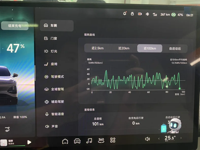 #全新小鹏G6六项全能轿跑SUV# 提车一周多,上牌贴膜全搞定,以后防晒效果满满,大屏看着就是爽,语音操控便捷,体验了一下充电,速度杠杠的,辅助驾驶上手快,最喜欢是自动泊车功能,简直就是新手的福音,停车解放双手,能耗13多点,估计跟脚法有关,后面好好磨合一下估计能更省,紫色越看越耐看,白色内饰其实挺好打理的,拿泡沫剂抹布擦一下就很干净了,晚高峰用智驾总的感觉挺好,但是遇到突然加塞的还是要手工干预一下的,各个场景的语音自定义好玩有趣实用,下车再也不怕忘拿手机,安全方面并道辅助,超速提醒,都体验了,安全系数满满,目前用的舒适模式,市区通勤足够用了,这样续航更加省,今天娃路上无聊,和小p聊天,让小p讲故事,也算是发现新大陆了