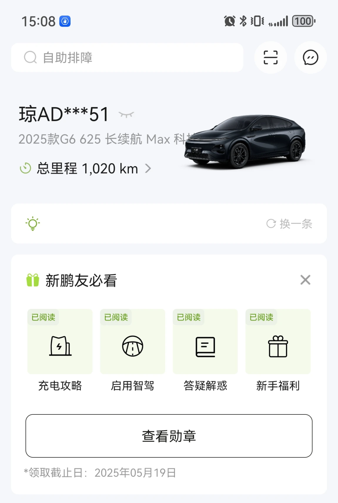4.19到店对接的销售小姐姐非常热情专业,到交付环节,在交付专员陪同下现场查验车子没问题后,交了尾款,买了保险,然后交付专员详细介绍了车子的使用功能及操作,交付时仪表盘显示6km,里程可行驶482公里。当场办理临牌走高速开NGP全程平均105开到家,总里程89公里,每百公里电耗16kwh,剩余可行驶里程376km,剩余比例77%!然后也找鹏管家登记报名XOS5.6新版本推送。
