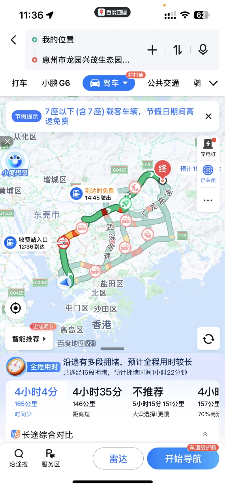 五一来开着G6自驾游!!五一放假第一天,把我的G6充满电,低谷期的电费还是比较便宜,幸亏还剩下一个位置可以充电,果断充满。考虑到五一第一天出行高峰期,第一天先去银行办事情。放假第二天出发广东佛山顺德,人还是一如既然的多,幸亏没太阳,天气比较凉爽,顺德的美食非常不错,到处人山人海,本想住一晚,酒店火热,价格太贵,果断打道回府,返程下大雨,还好有G6自动驾驶的帮助,🚗开起来非常轻松,一点都不累!