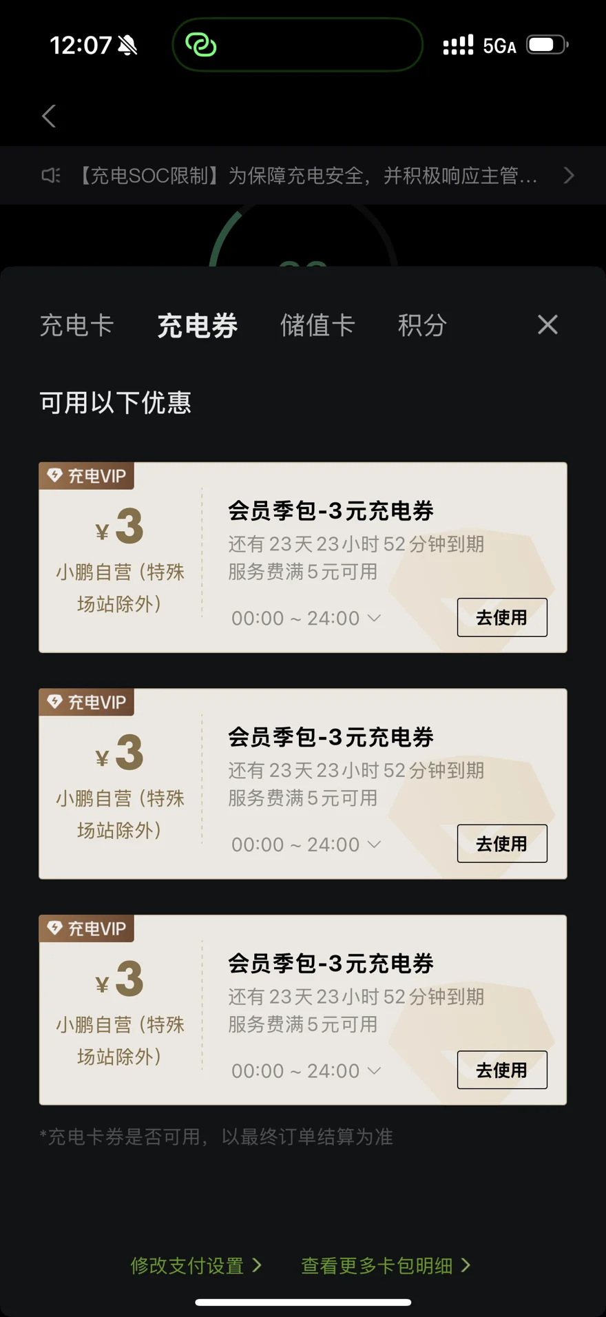超低价充电攻略,每次充好电不超25元。购买季卡优惠券,然后每次服务费够5元就去拔枪一次。而且一定也不会麻烦,记得开通插电自动充电。舒服