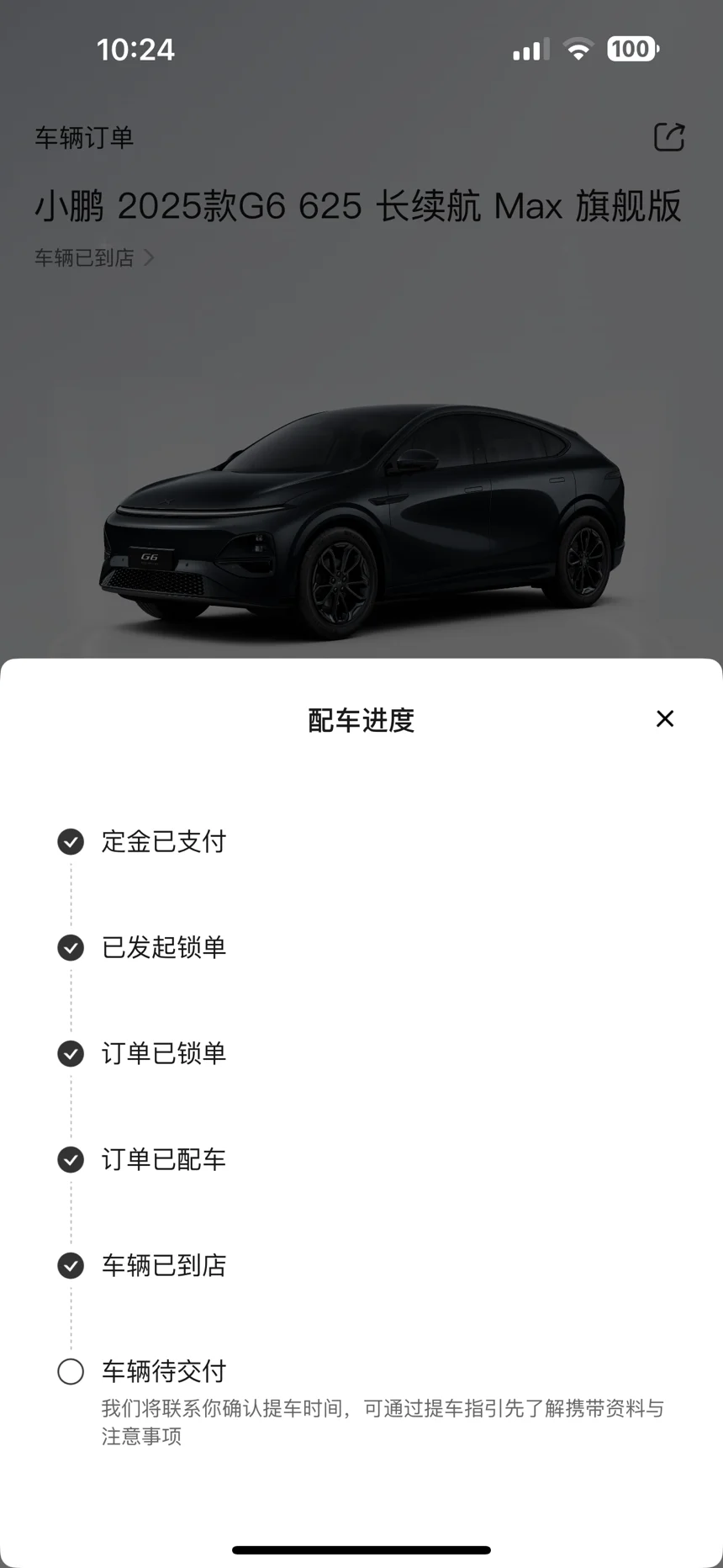 #我的提车作业# 终于提上我心心念念的2025款小鹏G6了,提车前就做足资料了,4月6号锁单到5月2号提车这个速度相对来说还是挺快的,提车当天交付专员给我详细介绍了车辆功能和注意事项,而且还拍了提车的照片,当天就把车开回家了。
