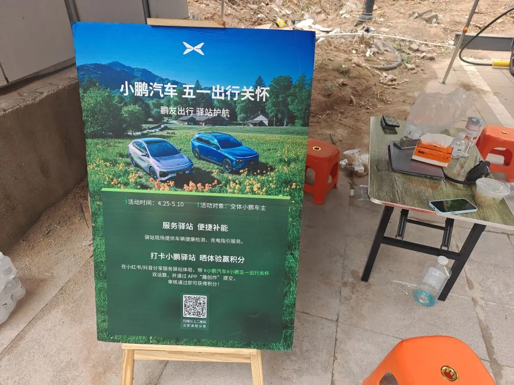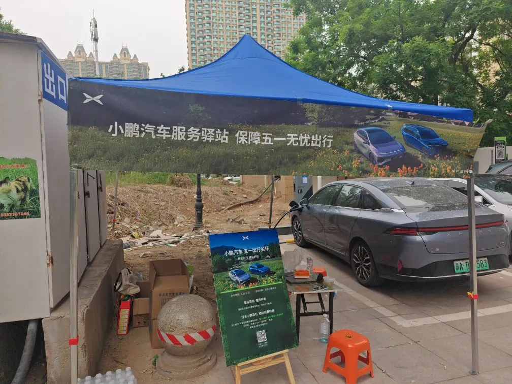 去快充桩充电遇到小鹏五一关怀活动,给免费添加玻璃水,检测胎压,很体贴