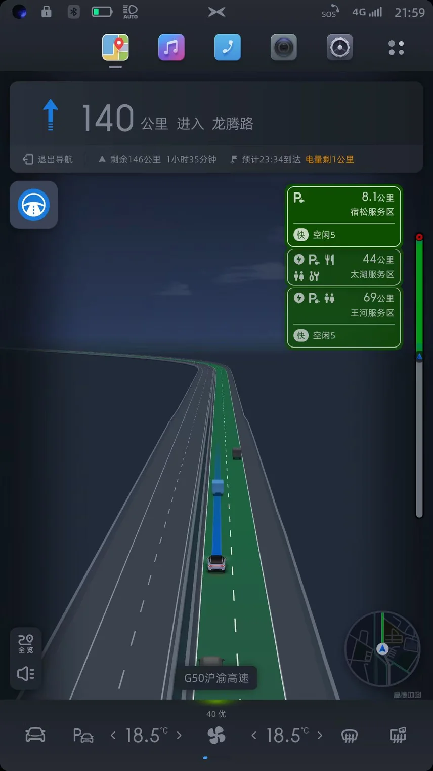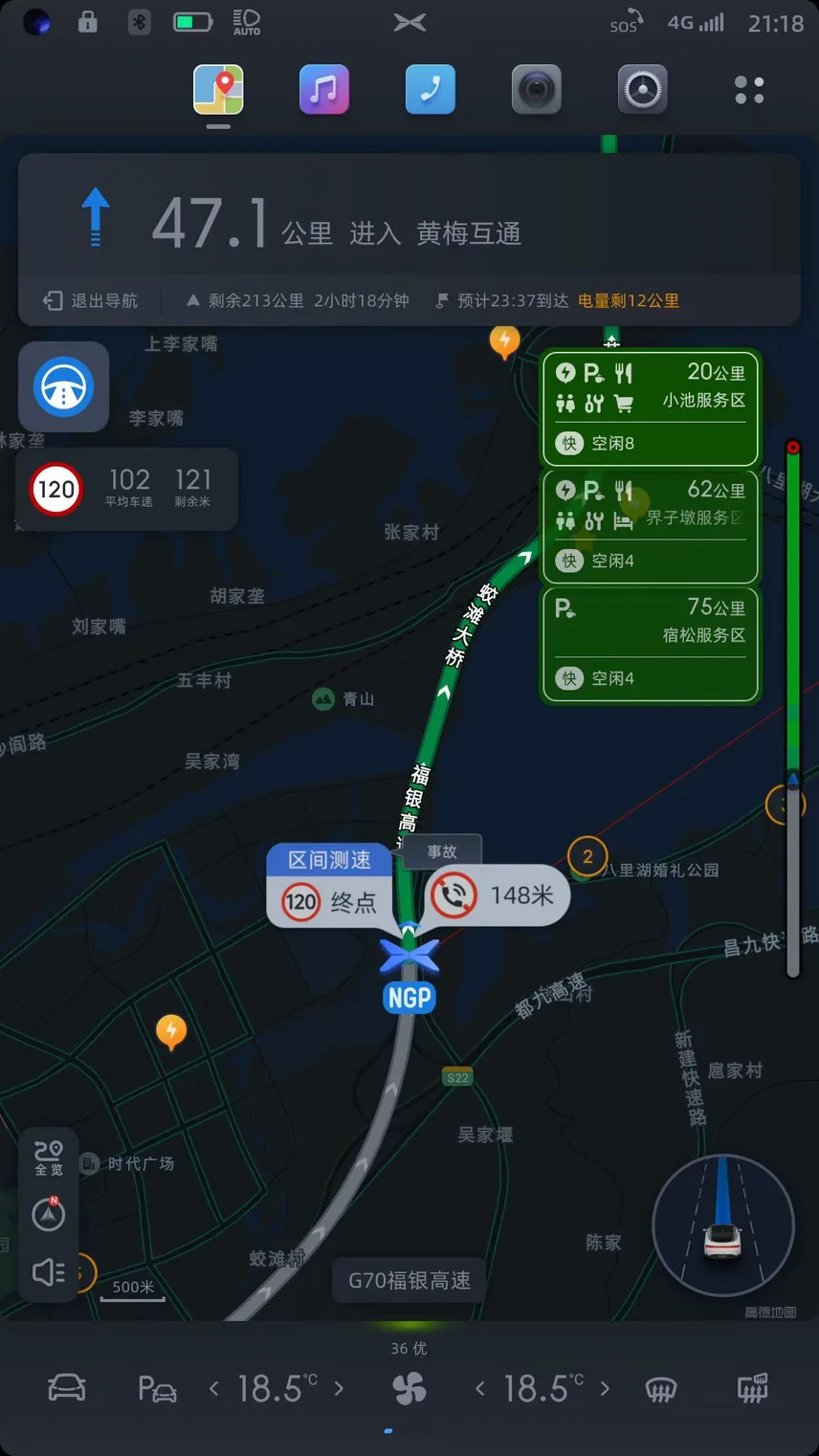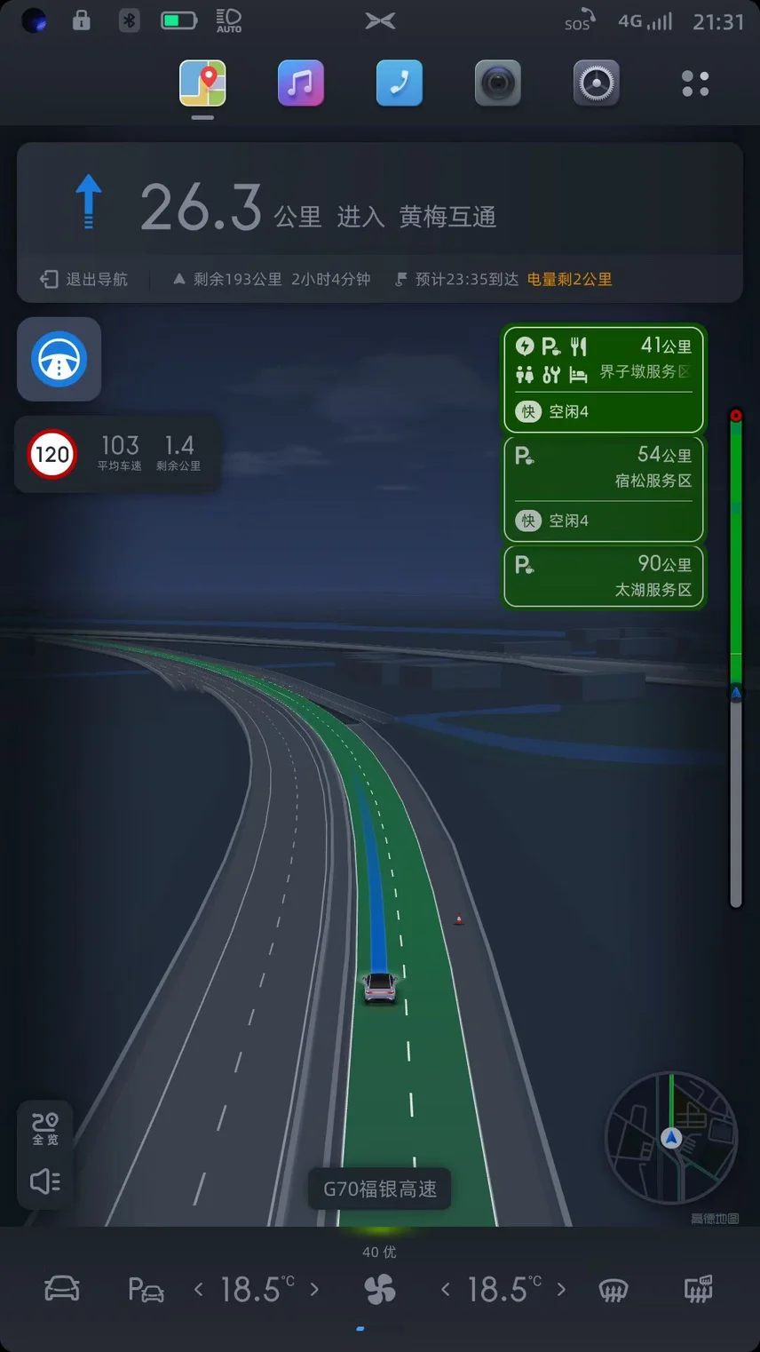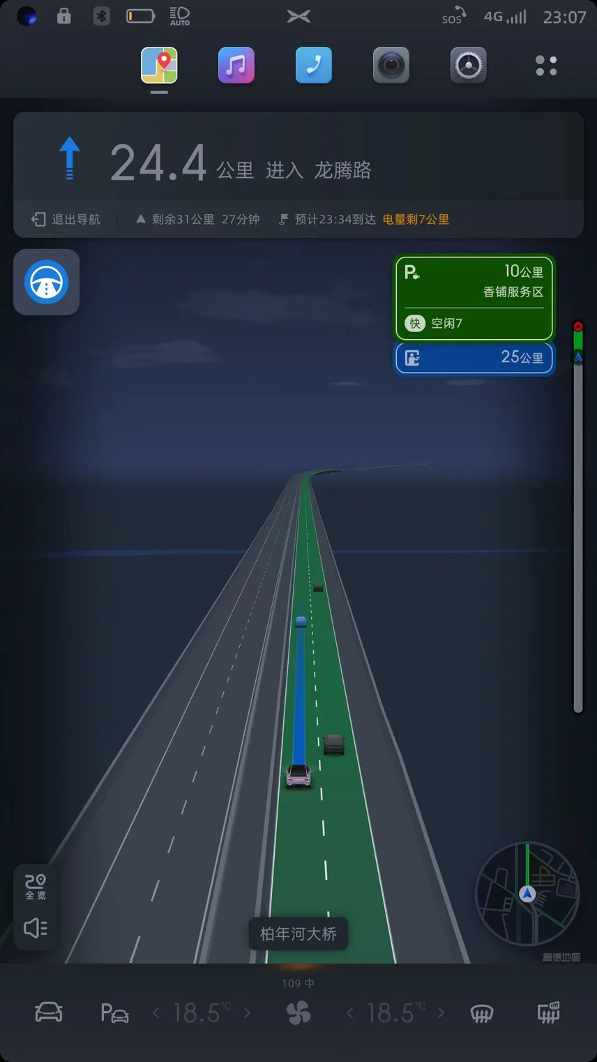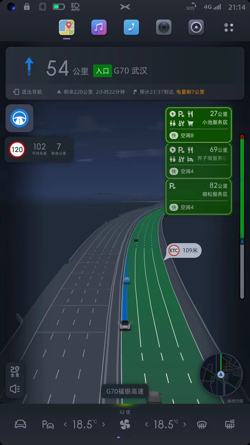 续航由我不由车。全程保持100-110,偶尔120。续航扎实得很,卡极限到充电站。全程0高速费,0充电费