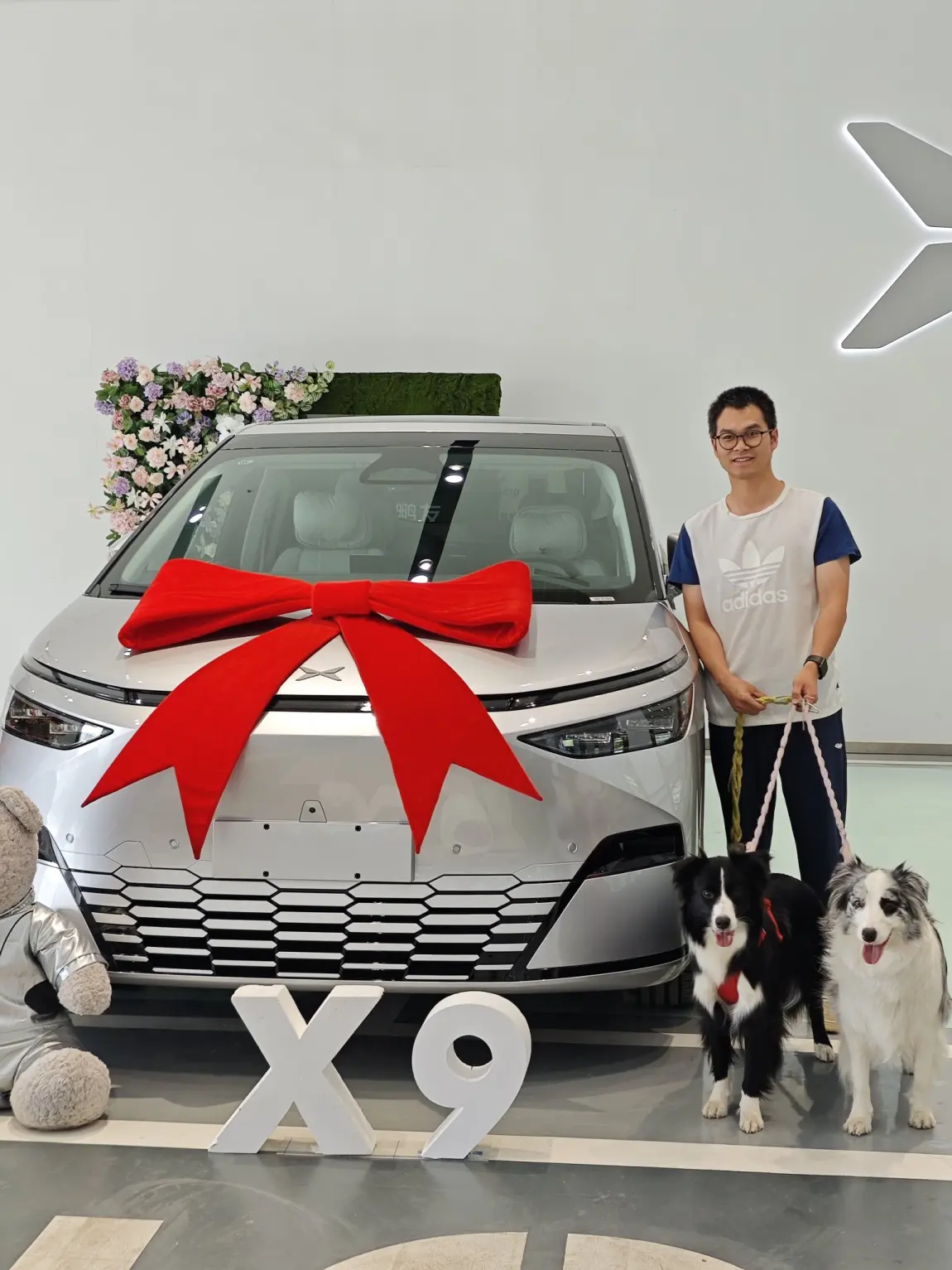 #我的提车作业# 5月4号,青年节这天提到了心心念念的x9。以前看MVP都会觉得老气,而x9完完全全是年轻人的车,低调却充满科技感。以前是开油车的,每次加油就会心疼,加上现在油价这么高,舍不得出门玩,但是家里两个娃每周都有出门需求;并且油车不能把狗放在车里,特别是天气热的时候。去商场试坐过蓝图、蔚来、腾势,都没有购买欲望,直到碰到x9的零重力座椅和后排全平的后备箱,瞬间就决定买x9了。买车提车也很愉快简单,交了定金一直有客服对接,假期还帮忙安排工作人员接待交车。提车速度也很快,全程不需要自己跑,静待提车就行。提车后小狗开心得不行,第二天就带去宠物乐园游泳了,以后会开着x9带着小狗多出去转转,开开狗眼👀