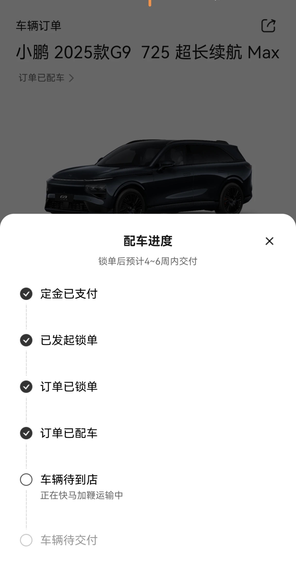725黑武士咖内,4.21锁单,今天配车,供鹏友们参考