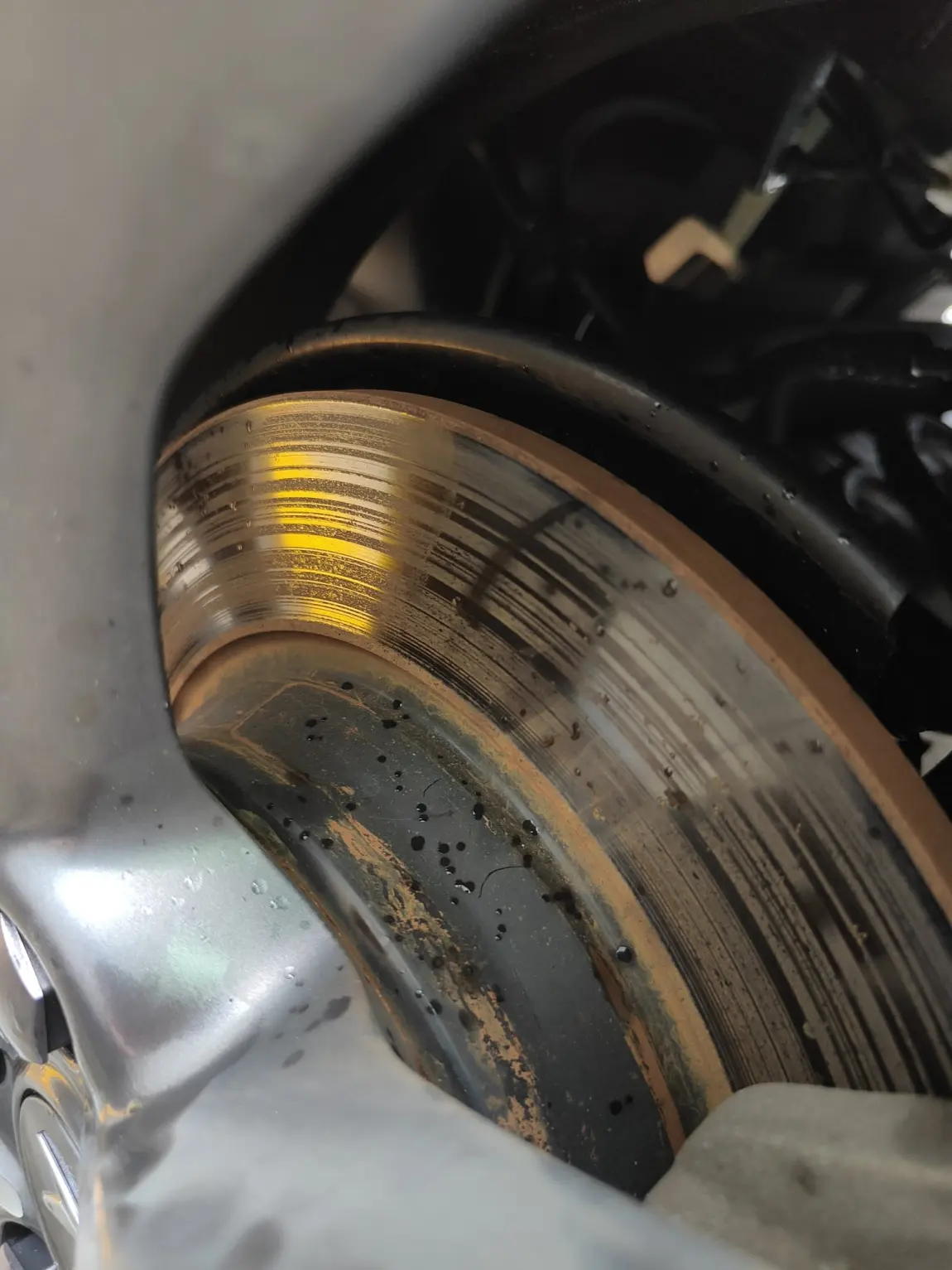 有没有懂得大哥能告诉我一下,刹车盘这个样子到底正常吗?不只是锈迹,摸上去是有坑洼感觉的了,唉