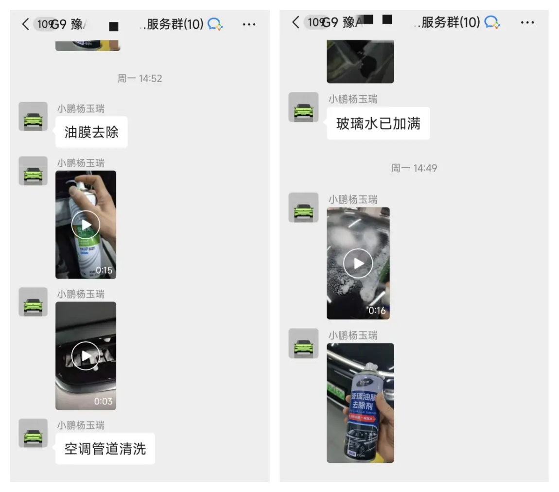 拉了专属服务群,师傅实时在群里报告车辆施工状态,保养完成后还给洗了车,一般来说保养都是只洗车身,但可能师傅这次看我车里太脏了(回老家造的)把内饰也打理了,直接省了好几十的洗车费。
