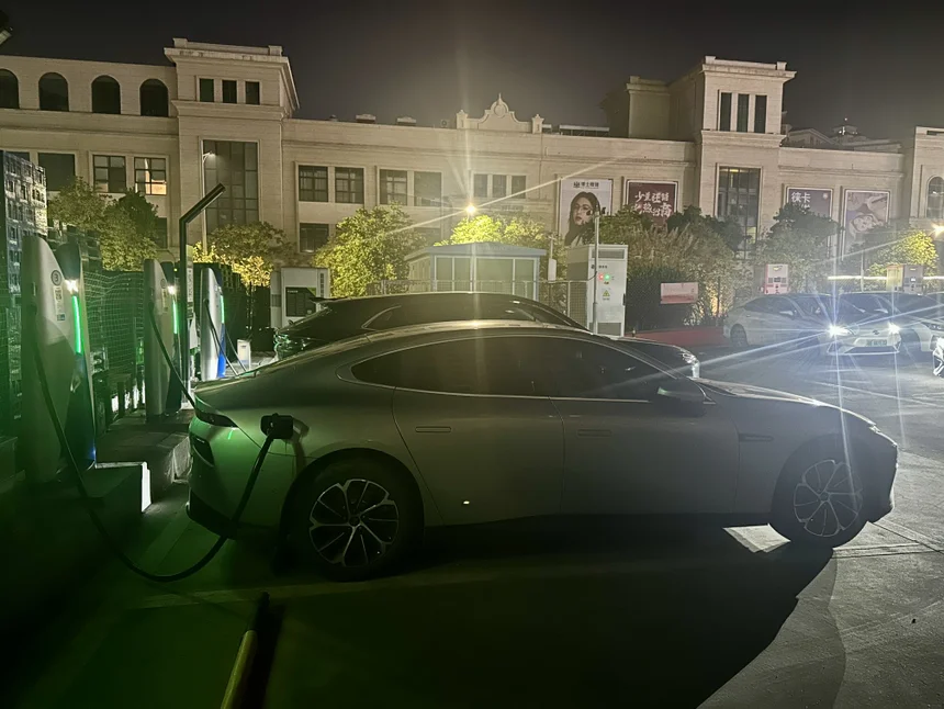 到达小鹏S4超快充惠州老畲生活荟站时,车辆的电量已经降到了4%。停好车后,我拿出充电枪,轻轻插入车辆的充电口。这里必须要夸一夸小鹏的服务,因为我有免费电卡,所以插上充电枪后,车辆就直接开始充电了,真正实现了“即插即充”,完全不需要像其他充电桩那样,用手机扫码启动等繁琐的步骤,大大节省了时间。