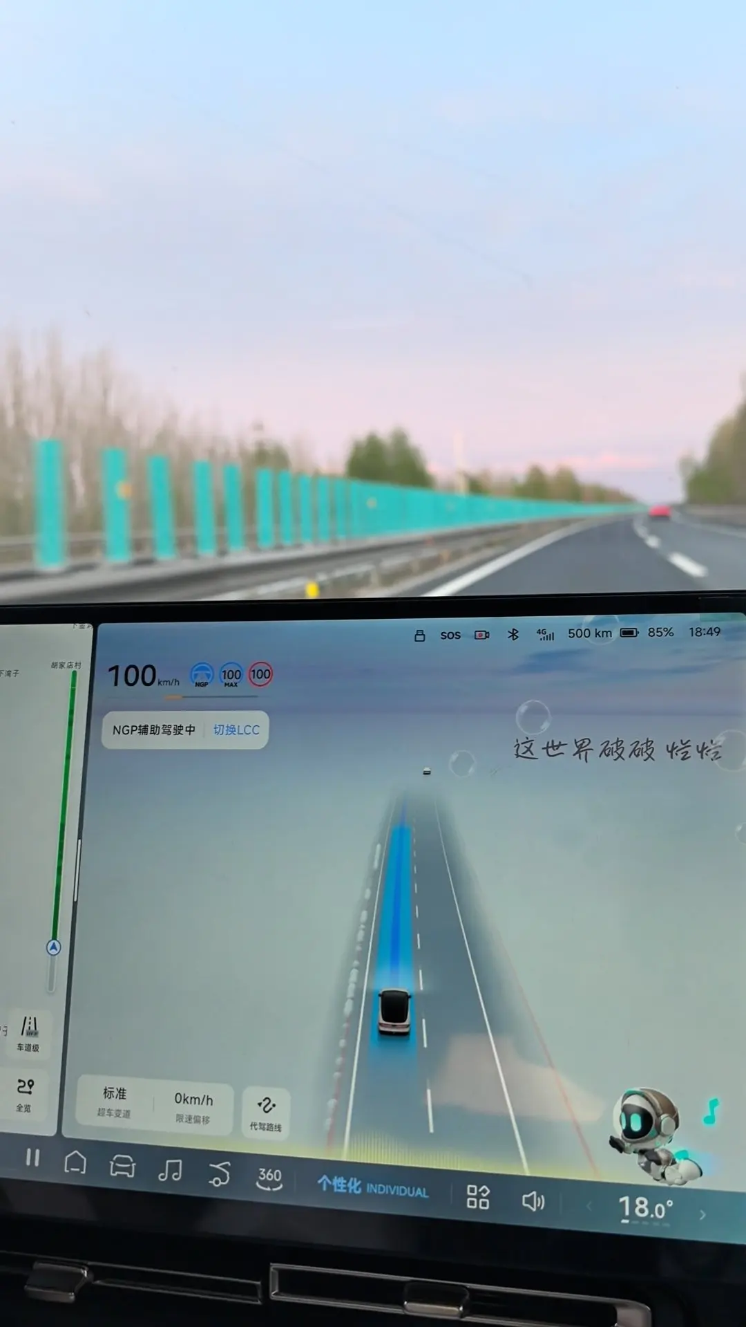 从内蒙赤峰开到沈阳 单程充一次电。高速上一半路程开的ngp,挺好用的,但是去的时候后半段京哈高速大车很多,天气也不好,就没开ngp,总体来说感觉还是很好的,高速上司机没有那么累。