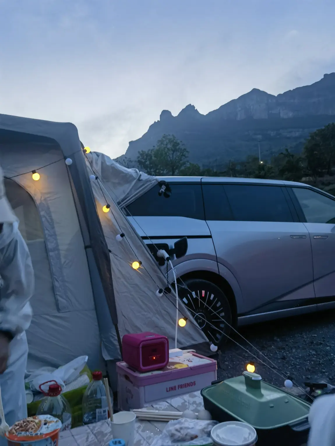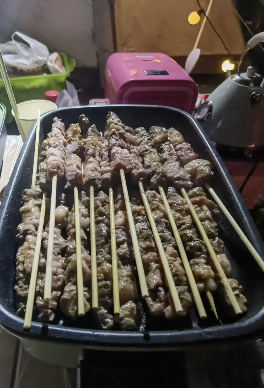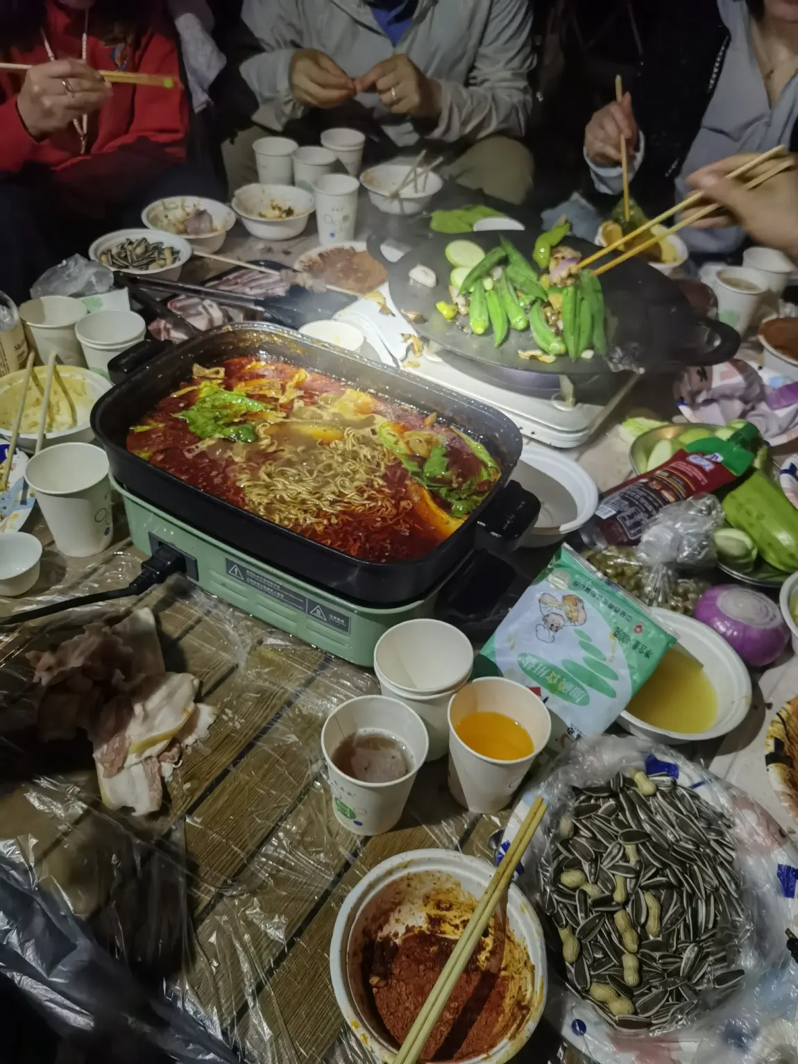 第一次在户外吃饭电饭煲的米饭,烫着火锅,唱着歌