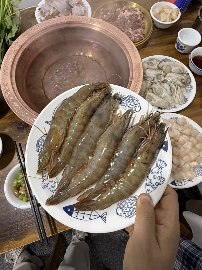 晚餐当然要吃海鲜了,我们选择小韩火锅,非常值得推荐,大盘海鲜又好吃又便宜
