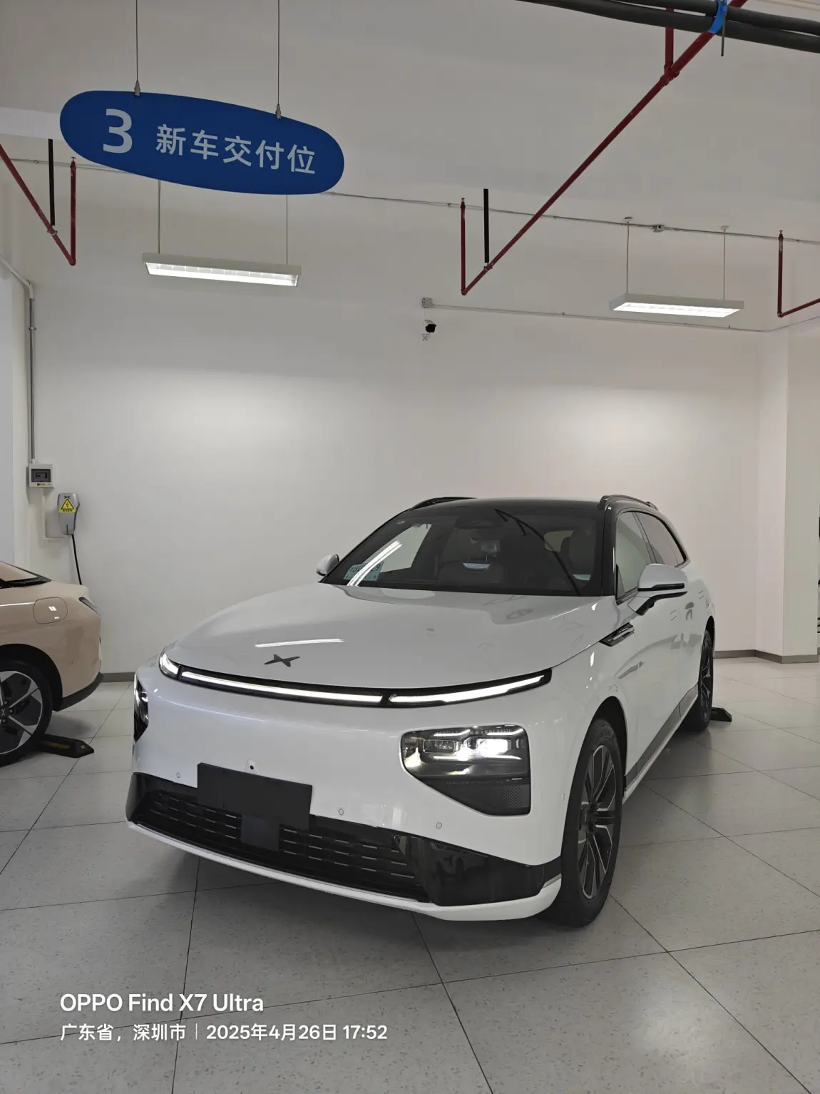 #我的提车作业# 2025.4.26提了新车G9,3.22试驾后3.24就预定了,也算是非常快的决定了。本来还在P7+和G9之间纠结,毕竟P7+的外观还是更长在我的心吧上,G9舒适空间更大更适合家庭出游,最终还是决定买它!第一步:检查车辆外观第二步:办理临时牌第三步:讲解基本功能和拍美照很快就可以开上车回家啦,坐着等的时间里还有各种美味小零食和茶饮~后面拿到牌照购买了小鹏etc都是拿到服务点去免费安装的,还能休息吃吃喝喝等待,服务很棒很满意。微信客服群里偶尔发一些十万个为什么也有人及时回应,总体来讲女司机很快乐!