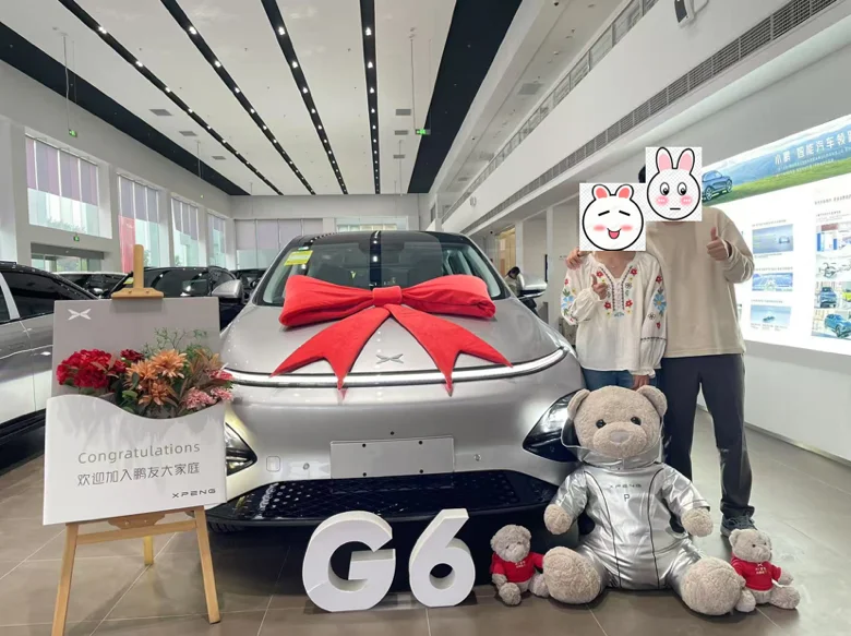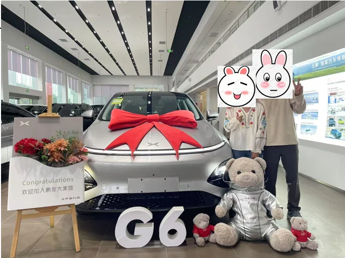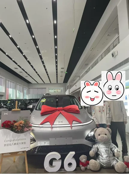 我是5月5日定的车,然后10日开始配车,16日提车。经过了11天的漫长等待,终于可以去把我心爱的小鹏G6提回来啦,这11天简直度日如年呀,没人能体会我焦灼的心情! 记得订车以后,销售就拉了一个交付群,每一步都有专人对接,银行,保险,贴膜,上牌,验车等,讲解很清晰,安全感十足,另外赠送了2000度电卡,销售还是有良心的。