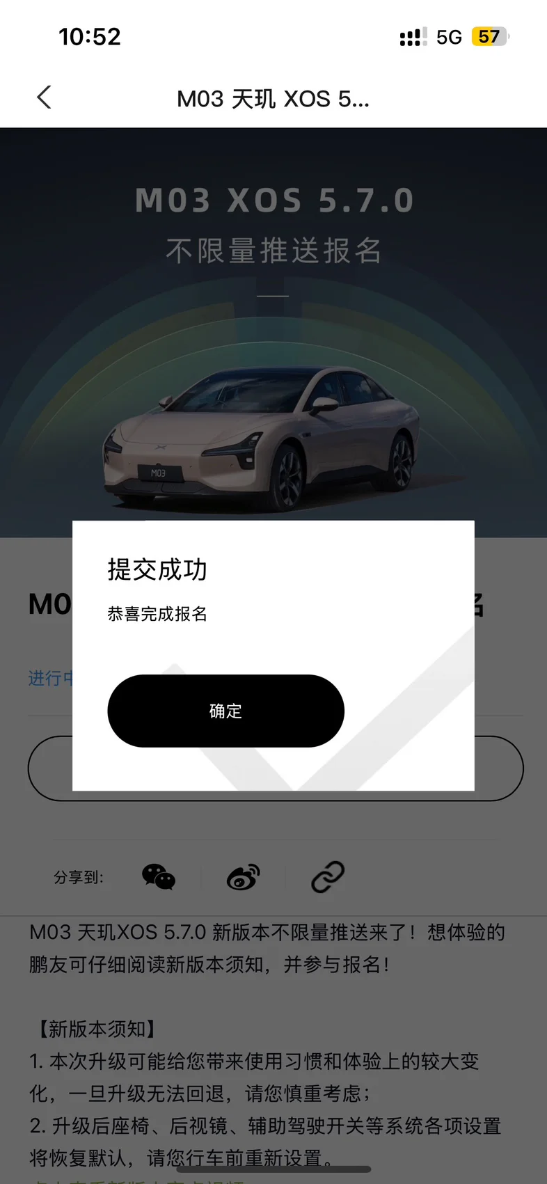 #小鹏汽车# #小鹏OTA次次焕新车# #小鹏MONA天玑新增300+功能# 今天早上收到了新的天玑推送的消息太激动了,25号那天十点整就激动的等待着报名本来觉得应该可以在1000名以内没想到晚了,今天早上天玑终于来了下载完以后感觉车机变化太大了,跟换了一个新车一样,有各种智慧场景,小p也聪明了,车机导航也变成了车道级导航太棒了吧。