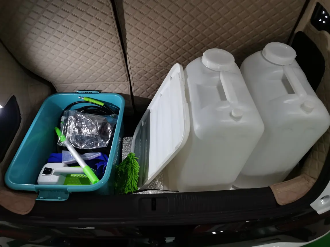 考虑到X9巨大的块头,怕一般的水桶水不够,又入手了两个45升的储水桶,可以实现洗车自由啦!