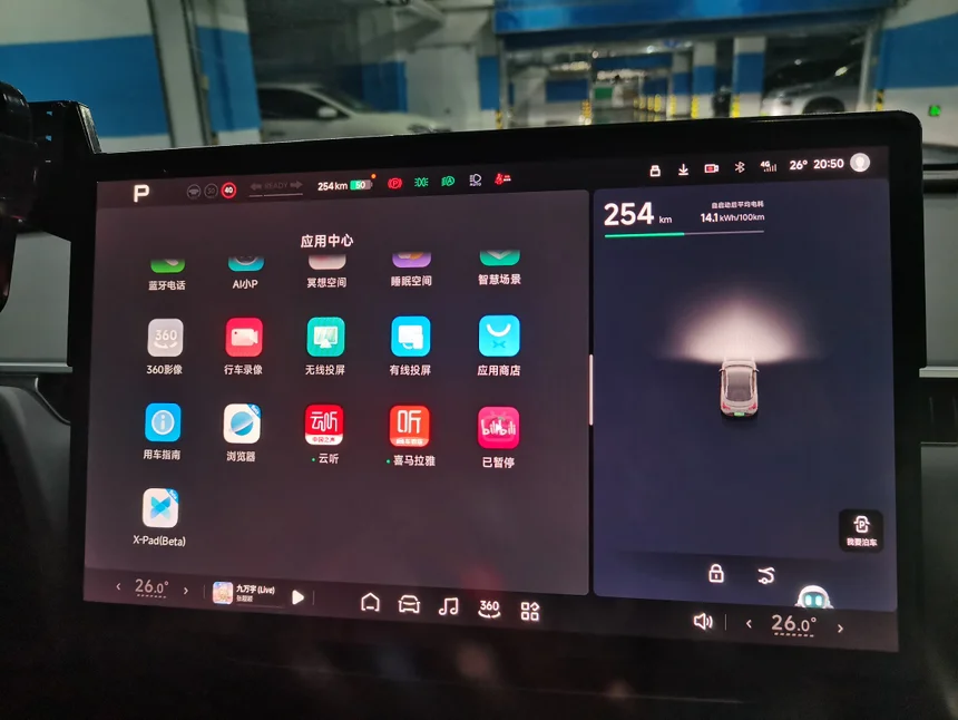 1. 全新操作系统:效率与个性并存 升级后天玑系统的分屏操作彻底解放了中控屏——主驾导航+副驾娱乐同时运行流畅无卡顿,15.6英寸大屏终于物尽其用。自定义Dock栏让我把充电桩查找等高频功能固定在了触手可及的位置,甚至能根据时间段自动切换(白天显示导航/夜间优先音乐)。系统设置里新增的「光影主题」会根据日出日落自动切换UI色调,连空调出风动画都支持自定义,仪式感拉满!