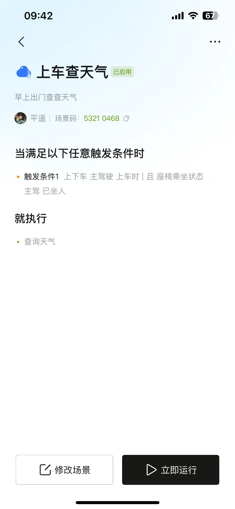 #给新鹏友的用车指南# mona m03的一些用车指南😆@鹏友俱乐部 p1-p4: 智慧场景码,可以恢复现在天玑系统(M03 天玑 XOS 5.7.0)前旧系统的一些功能,也有很多新功能。比如主驾上下车迎宾座椅调节;氛围灯调节;一键极速降温、升温;上车查天气等。(有需要哪些场景码的可以评论告诉我)p5-p6:手机车控功能,个人觉得最实用的几个快捷功能设置在最上面了,还有最喜欢的两个功能:1.远程查看,可以实时查看车辆🚗附近的情况。2.直出直进,停在一些不方便开车门的车位上,这个功能就非常实用👍