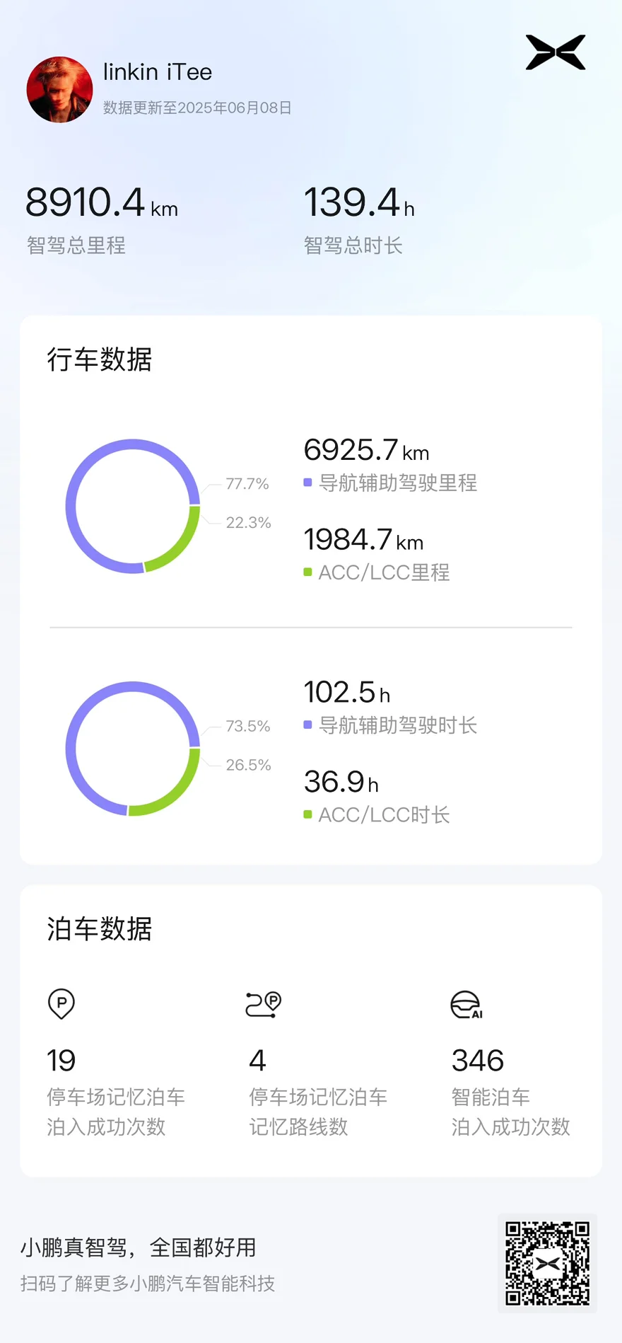 2、使用篇:小鹏的能效还是蛮高的,市区的夏天能耗经常可以到10-12之间,可以说很少有车企做的到,电控续航也蛮好的,我的755版本,90%的情况下实际可以跑540-560km,还是很够用了,开车注意安全,因为探头、雷达、高科技的配件太多了,一不小心的磕碰维修费就会很贵哦!要有心理准备!保险费用和油车差异不大,除非你出险费用太高了!一般一个月就会更新优化系统,还是蛮好的!还有就是小鹏的售后服务很好,都是真人管家1对1服务,高效便捷!就是可能会遇到车辆降价,要是你不急,最好不要买刚刚上市的重新,等等有优惠!