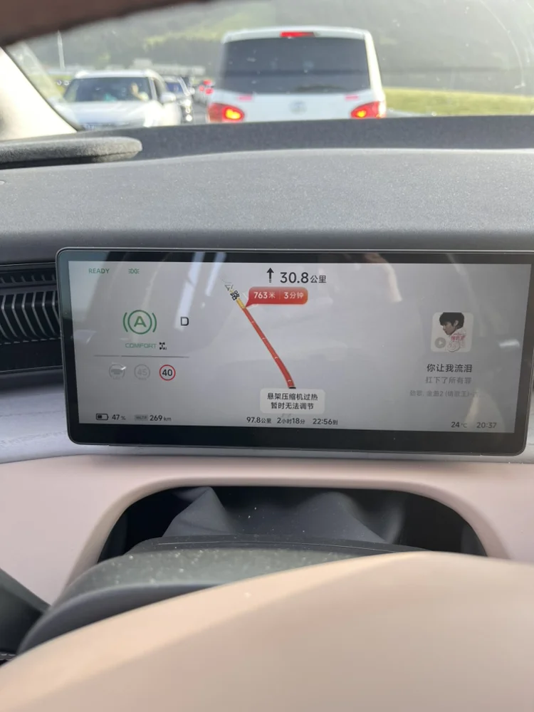 独库公路自驾是遇到空气悬架系统报警,提示“悬架压缩机温度过高,暂时无法调节”。