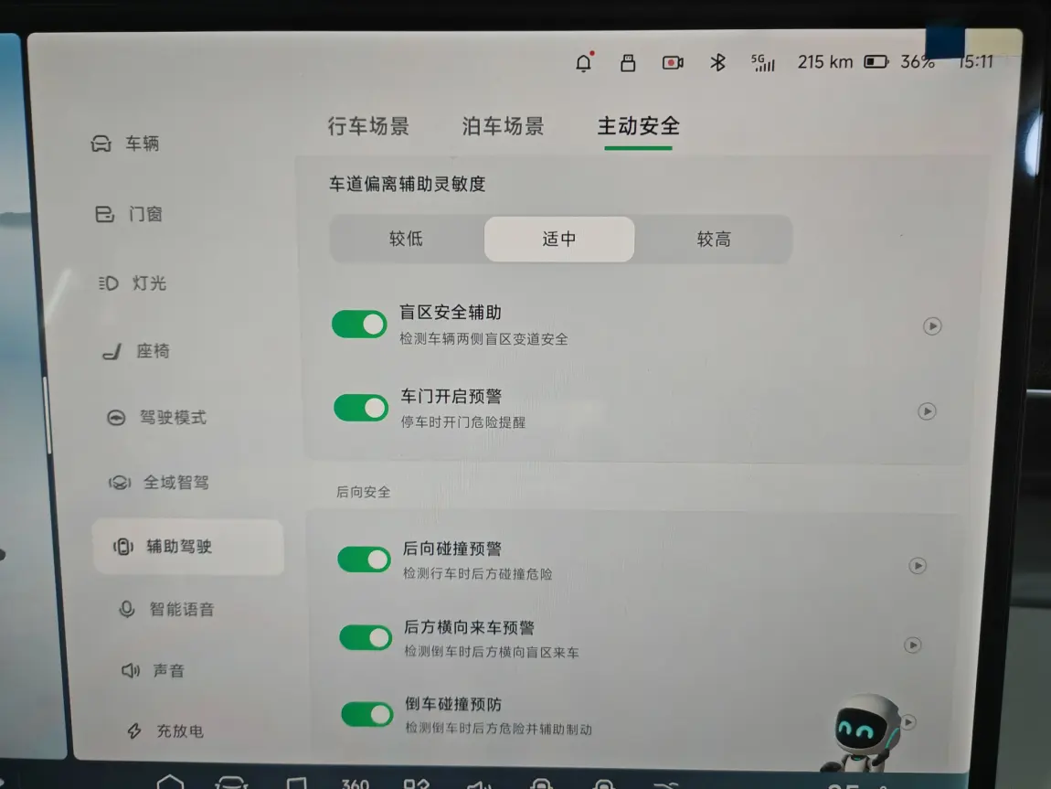 1.主动安全,建议默认都打开,能有效提醒前方,侧向,后向车辆靠近