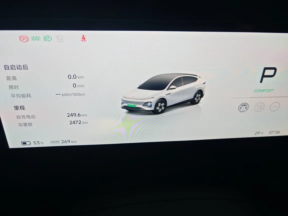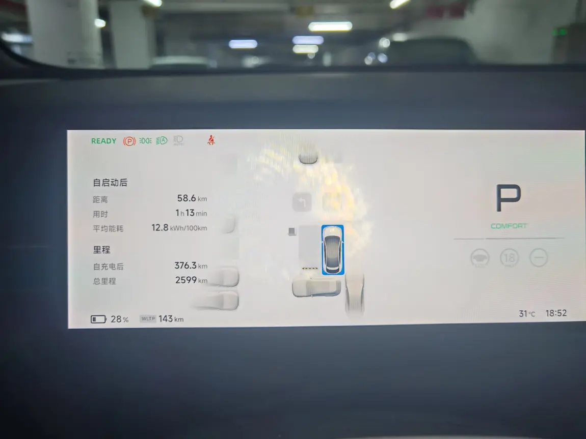 更新啦,更新啦!我的小 6 续航测试更新了!周一上午满电出发上班,用了 3 天。今天周三下班到家,共计用了 72% 的电量,跑了 376.3km,表显还有 143km,这样一来,大概满电能跑 520km。结合标称续航 625 km,这样一算达成率就有 83.2%。说明下,每天上下班有接近二分之一高速,车速保持 100-110,中午车上休息,大概耗电 2-4%。