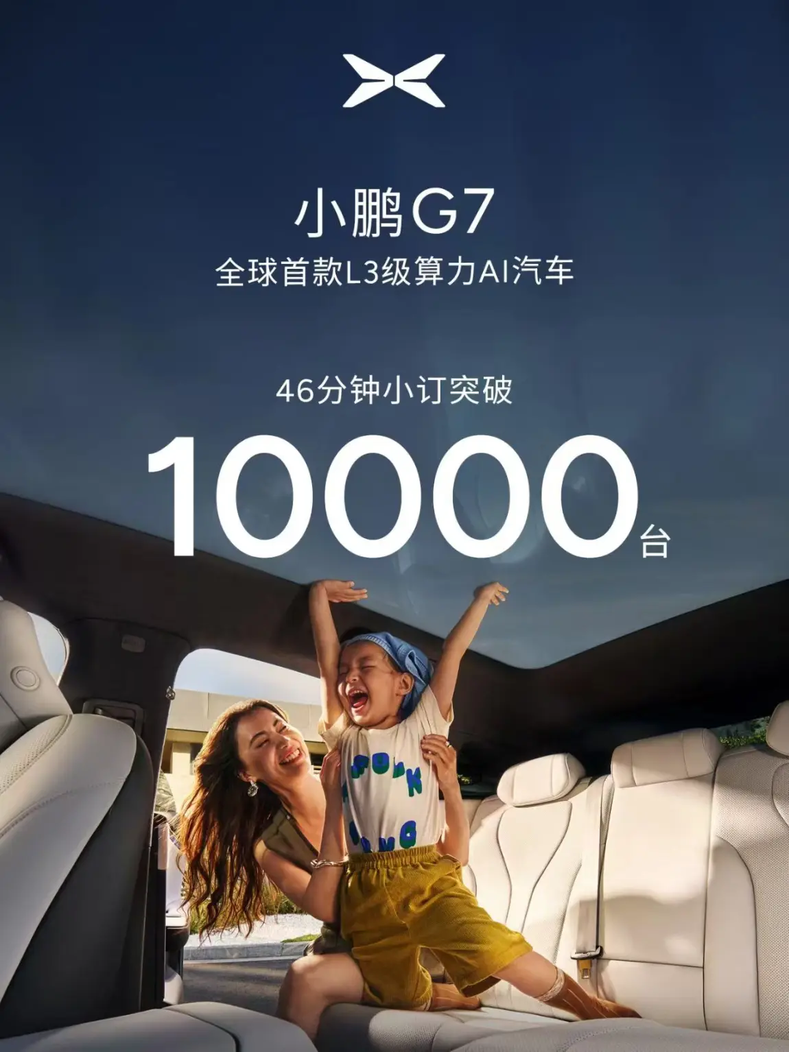 昨晚的小鹏G7亮相很成功啊,46分钟小定即破万了,希望正式上市以后继续大卖!