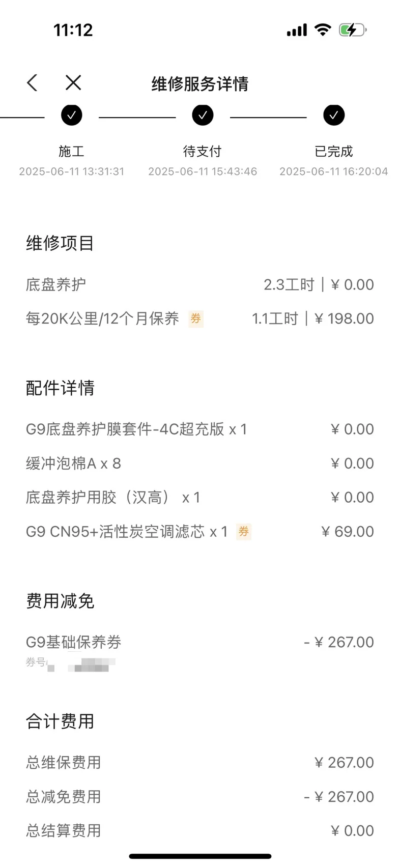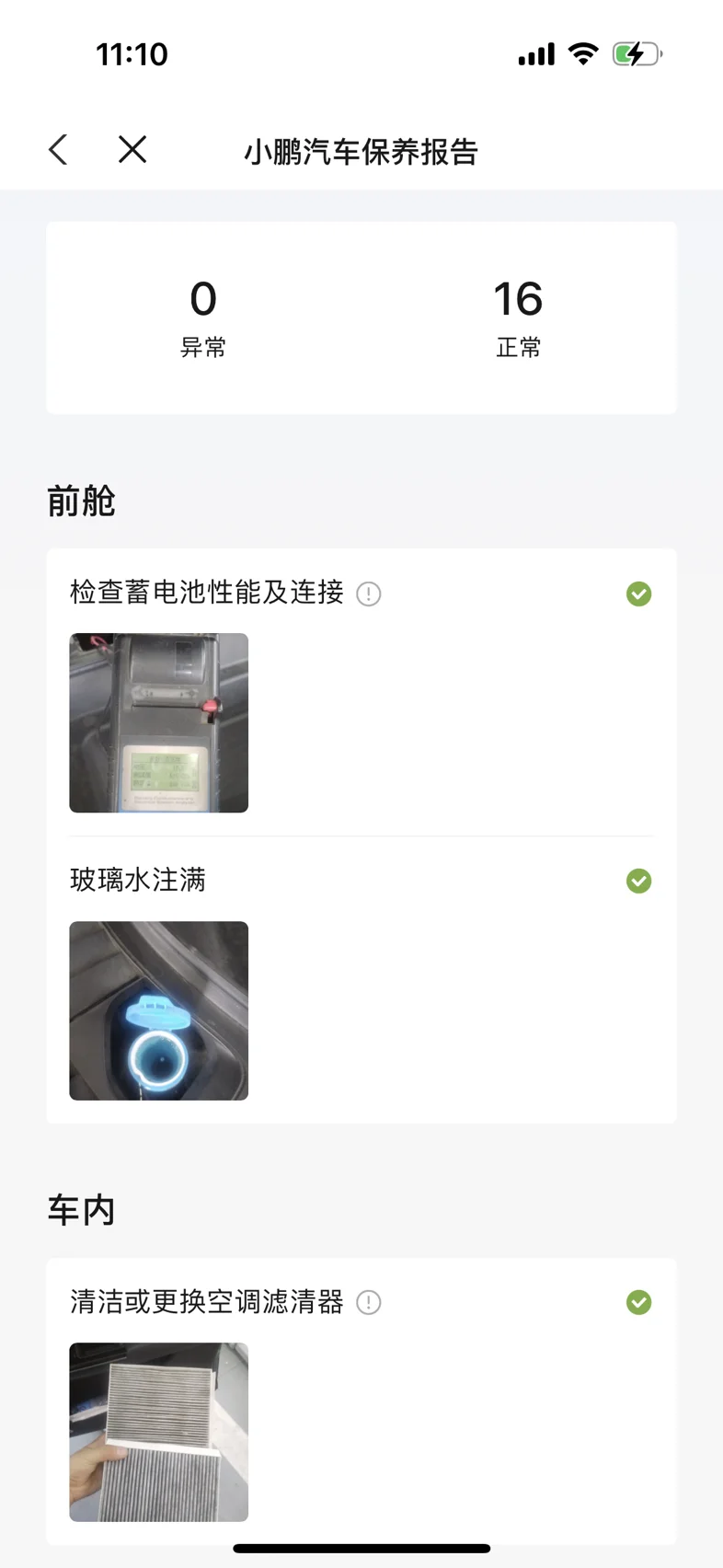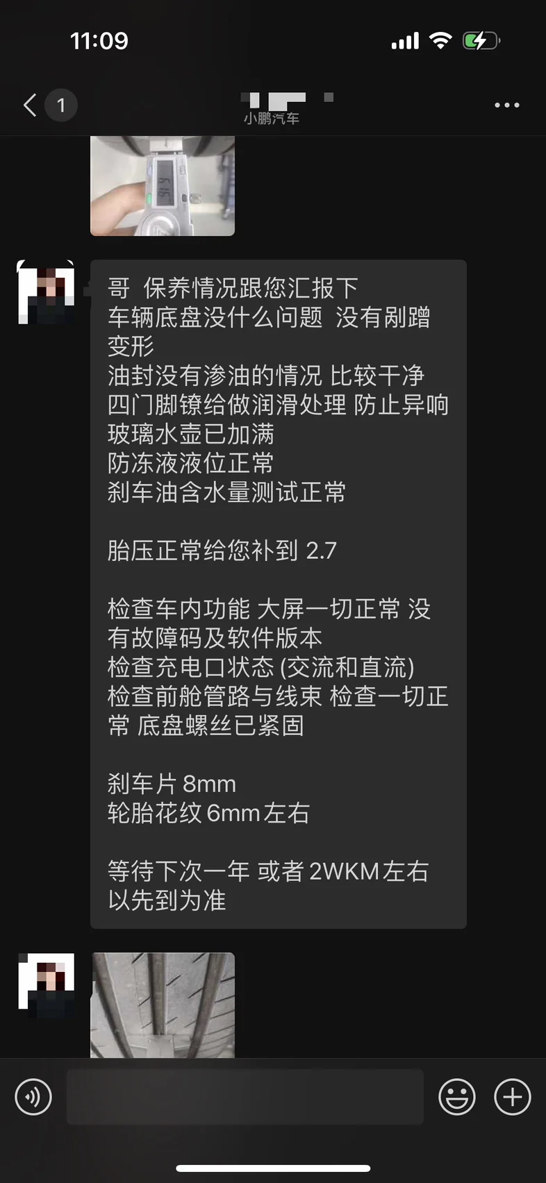 记一次售后体验:省心、专业、好评。1. 车辆管家沟通及时,态度好。2. 门店专员邱薪竹全程沟通进展,关键结果有图片反馈,体验不错。3. 检查项目在APP侧有具体报告,核心参数量化观测,车主心中有数。4. 取送车由代驾完成,全程无需操心。司机师傅服装整洁,未损坏或弄脏内饰。(我其他品牌车白内饰上次弄完脏的我还去做了次内饰精洗,气死我了)5. 整体费用不高,并且4S店没有强行推销等策略,并且养护全面周全,属于超值。(我其他品牌车有时候会被恶心到,说明小鹏整体是专业 并且 车辆保有量足够4S店和谐运营的)