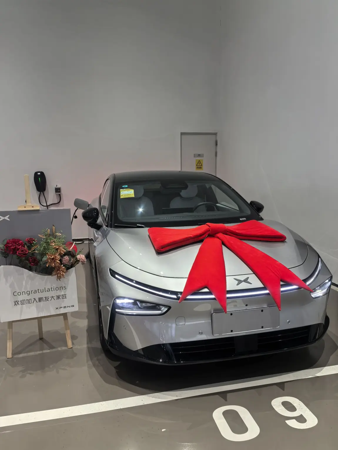 #我的提车作业# 从小米开始造车就想换电车,期间去看了蔚来,极氪,比亚迪,华为,阿维塔,总之二十万左右的轿车都看了,最后一家就是小鹏,当时是抱着随便看看的心态来看的,一进店就被p7+吸引,试驾的时候我坐后排感觉超舒服,当即就下定了,从此不再犹豫,银色真的超酷,对比下来小鹏的性价比也是超高,刚开始下定是超长续航版,车都快到了以后偶然发现旗舰版更香,然后就改了订单,旗舰版也就等了一周多就提车了。 目前开了一周,之前开油车,现在开小鹏也没有不适应,这个科技感给了我大大的震撼。