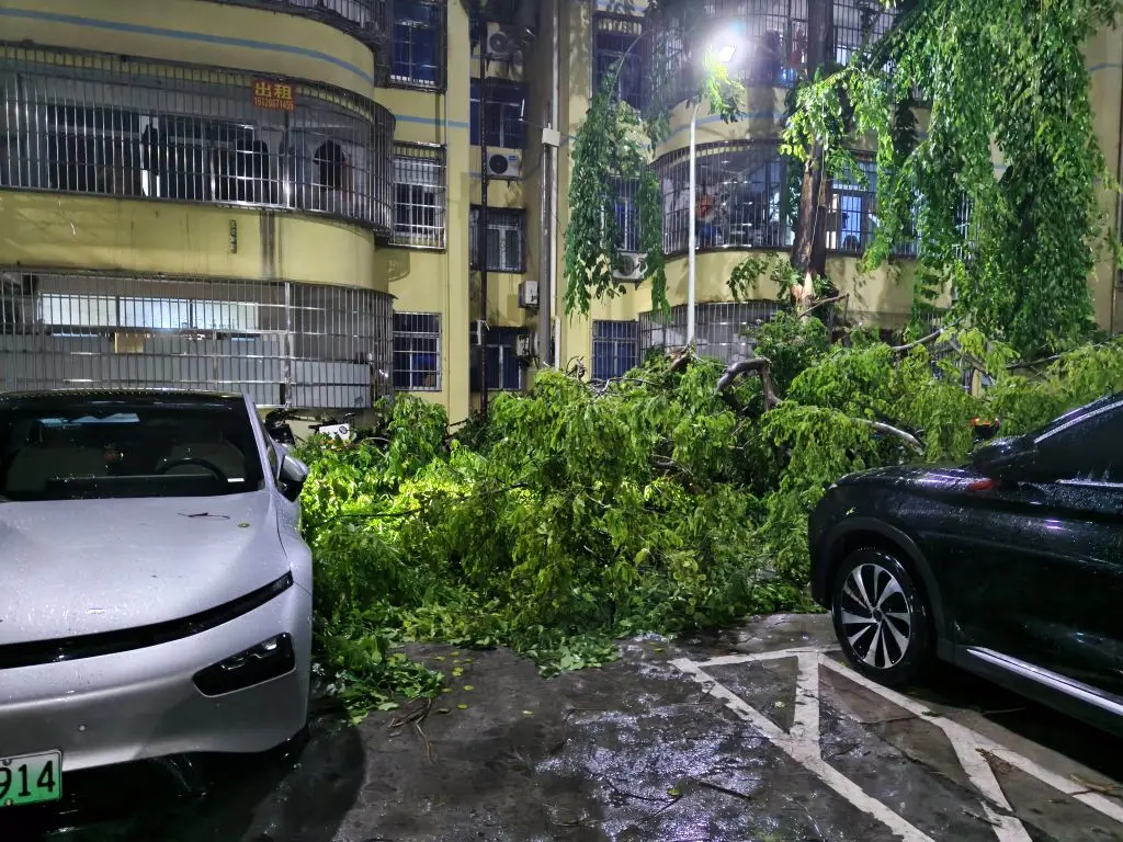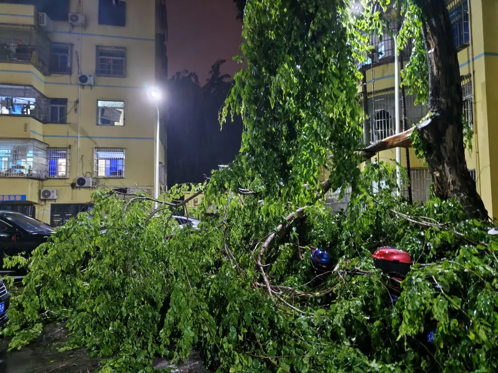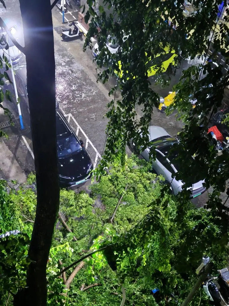 在家突然听到一声巨响,出阳台一看台风把树吹断了