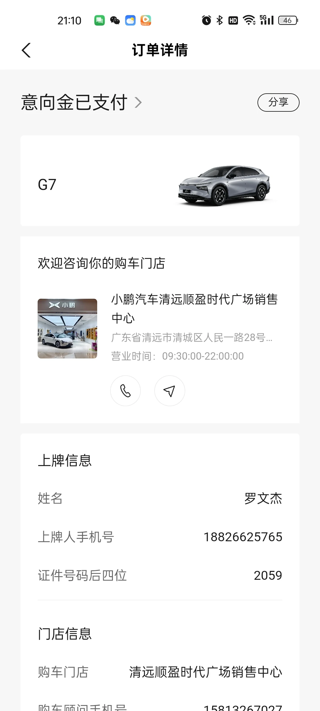 作为小鹏鸡柳车主,今天看到G7的超强配置,直接给老婆的车子置换。内心激动,还是忍不住下单!😄好期待!周末先去店里看看有现车👀