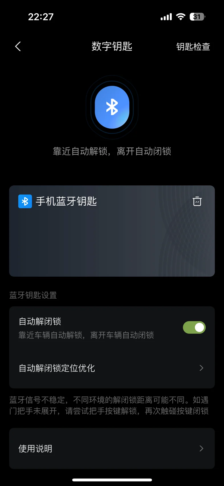 4. 蓝牙钥匙,无感解锁:在APP数字钥匙里面打开,手机带身上靠近车自动解锁,离开自动上锁+关窗,体验最棒的功能,没有之一!