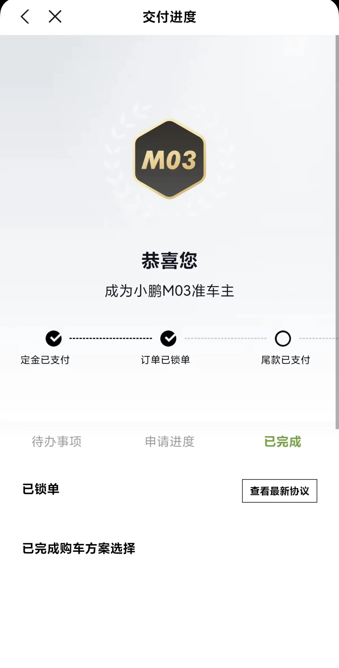 #晒小鹏M03 Max大定锁单# 因为未来每天通勤100公里,辅助驾驶是放在选车优先级较为靠前顺序,颜值也是很重要的因素,所以标准03并不在我考虑范围关注的都是阿维塔06,也在等小米yu7但是!!!m03max拥有高阶智驾高颜值高性价比看了几个视频我就觉得就是他了!立马盲订发布会大师兄给出的价格真的很难让人不心动立马大定锁单,销售帮忙抢第一批现车心动的朋友就赶紧行动吧
