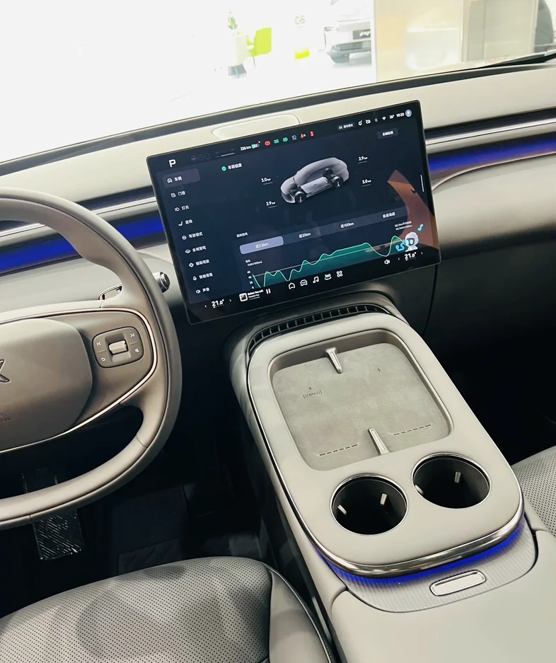小鹏G7的内饰采用“光韵乌托邦”设计理念,科技感与温馨氛围兼具。中控台采用悬浮式设计,搭配15.6英寸悬浮中控屏与87英寸追光全景抬头显示,信息展示清晰,操作便捷,减少驾驶者视线转移。车内大量运用软质材料、Nappa头层真皮、Microfiber超纤绒顶棚与来自欧洲的四门扶手曲面真木,触感细腻,纹理自然,PVD真空镀膜工艺的丝光金属质感饰条,在不同角度呈现出不同光效,精致又有格调。256色全舱漫反射氛围灯新增分区功能,能根据心情和场景切换色彩,营造浪漫惬意的驾乘环境。此外,全新一代云感舒适座椅采用12层舒适结构设计,坐垫有30mm舒适海绵层,提供前后排坐垫与靠背双加热、双吸入式通风、电动调节、记忆及行业首创指压按摩功能,贴合人体曲线,久坐也不易感到疲劳 。