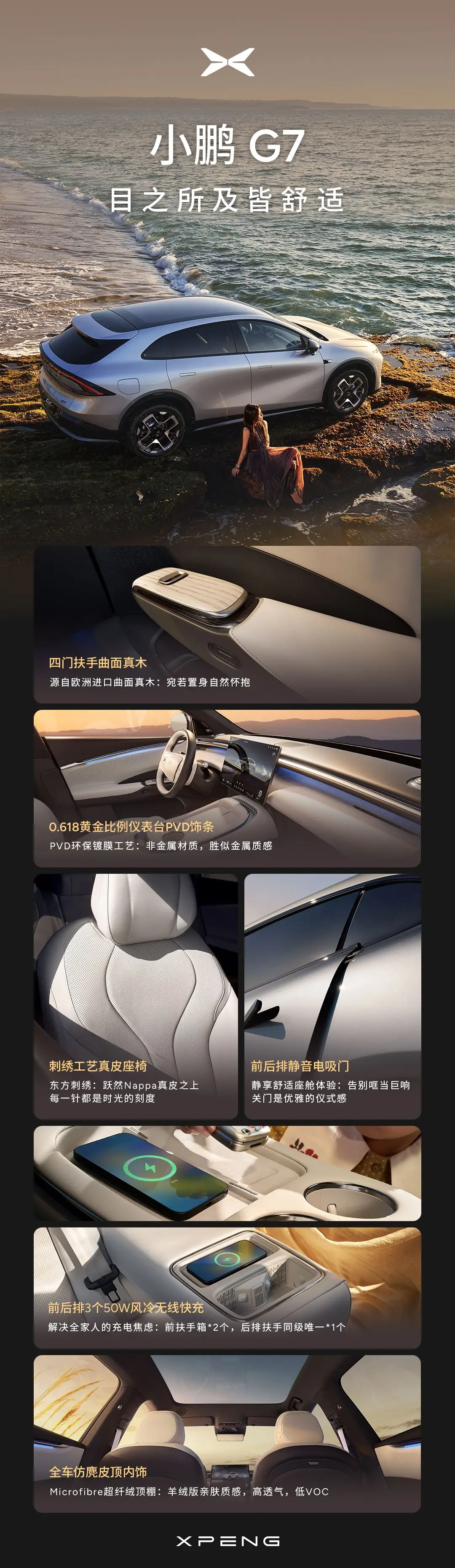 这次的小鹏G7,在内饰上相比之前的G6真的是进步巨大!特别是氛围灯,漫反射的氛围灯既好看又不影响驾驶,太棒啦?