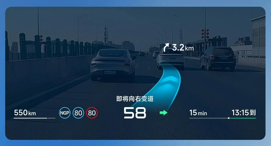 接入V2X数据显示红绿灯状态,副驾/后排多区域HUD结合手势交互,L3+自动驾驶中作为人机共驾关键界面。