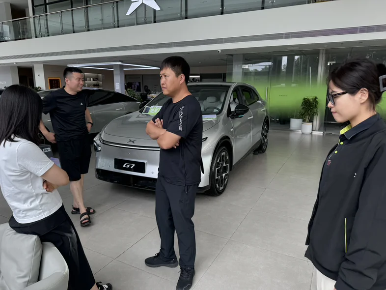 今天到店的时候正好赶上好几波来看车的,店里超热闹!有和我们一样在纠结选哪款SUV,一聊发现大家都被小鹏G7的智能功能种草了。还有个大哥特逗,把手机放到前备箱里,数能放多少个手机。我们几个陌生人围着车聊得热火朝天,分享对各种功能的期待,聊着聊着就互加微信成了“鹏友”,还约着以后一起自驾!没想到看个车还能交到新朋友,小鹏G7这波社交属性直接拉满~