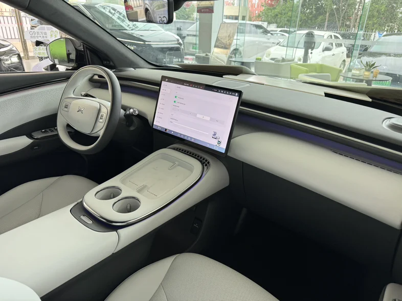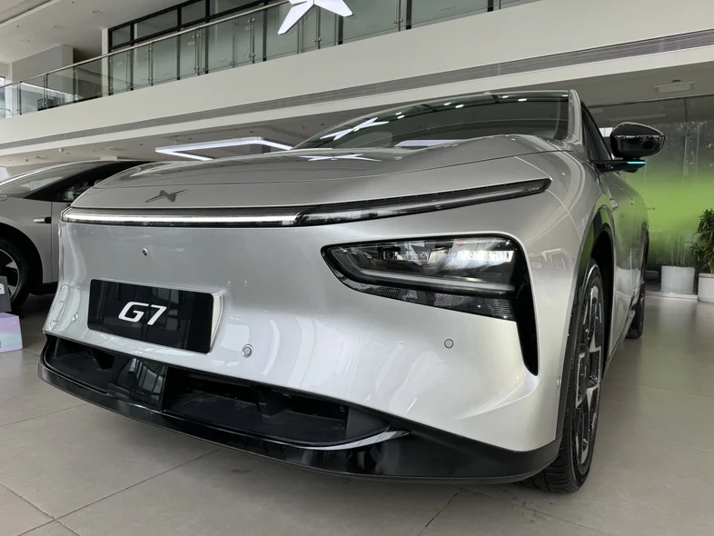今天终于在门店见到了小鹏G7!咔咔拍照打卡!实车比网上看的还惊艳,车身线条流畅,那个尾部AI小蓝灯超炫酷,坐进车里,这空间也太宽敞了吧,我1米8的身高坐后排,头顶还能空出一拳多,伸腿也完全不憋屈,感觉带着全家自驾游都超舒适!