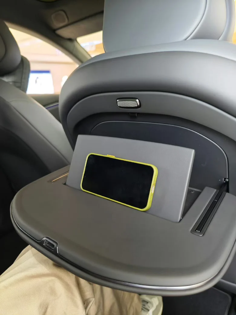 小鹏G7后排小桌板上这个支架挺细节的,还有磁吸,手机固定得很牢。