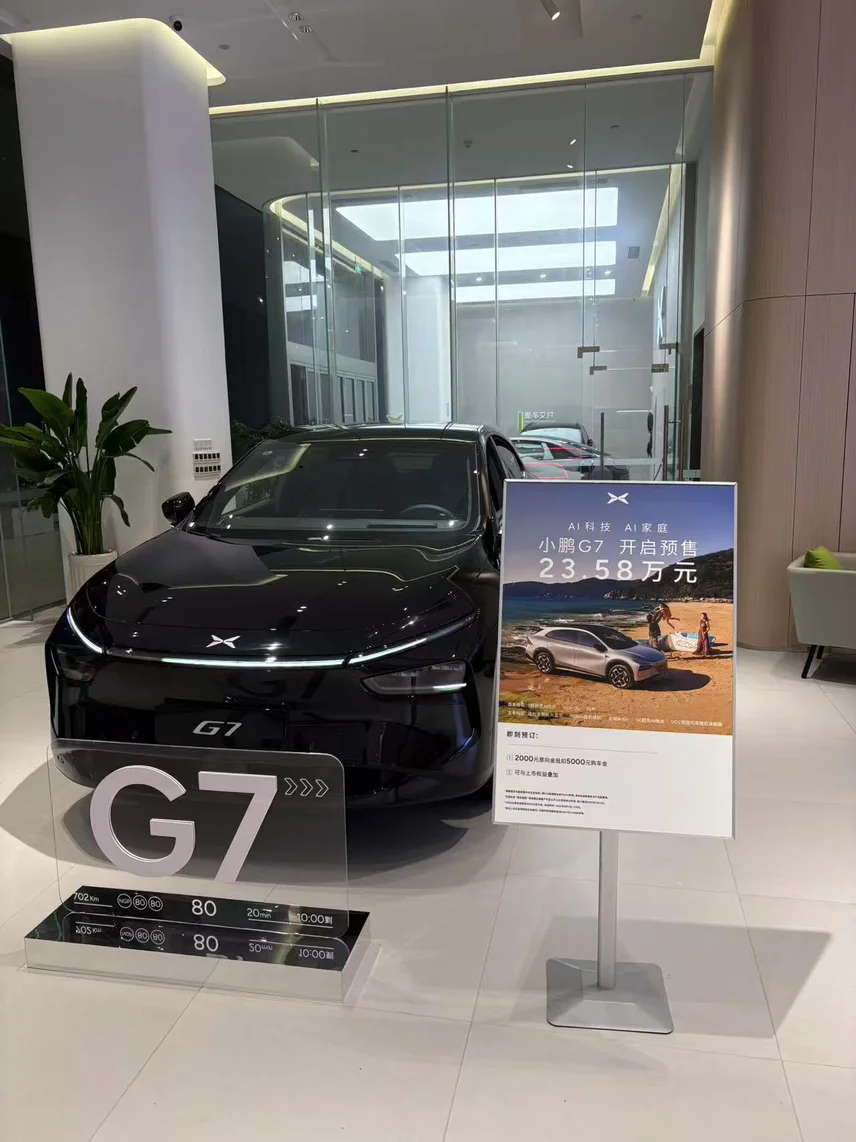 #小鹏G7的100处设计小心思# 坐进小鹏G7,就被它内饰的高级质感惊艳到了。车内大量采用软质材料,搭配Nappa头层真皮,触感细腻又亲肤,缝线细密精致,处处彰显品质。Microfiber超纤绒顶棚,以及来自欧洲的四门扶手曲面真木,更是将格调拉满。中控台采用悬浮式设计,搭配15.6英寸悬浮中控屏,科技感十足,操作流畅。取消传统仪表盘,以87英寸追光全景抬头显示替代 ,信息展示清晰,驾驶时视线无需频繁转移,既便捷又安全。最让人惊喜的是256色全舱漫反射氛围灯,做到见光不见灯,营造出温馨浪漫的驾乘氛围,还能根据不同场景、心情切换色彩,氛围感直接拉满 。