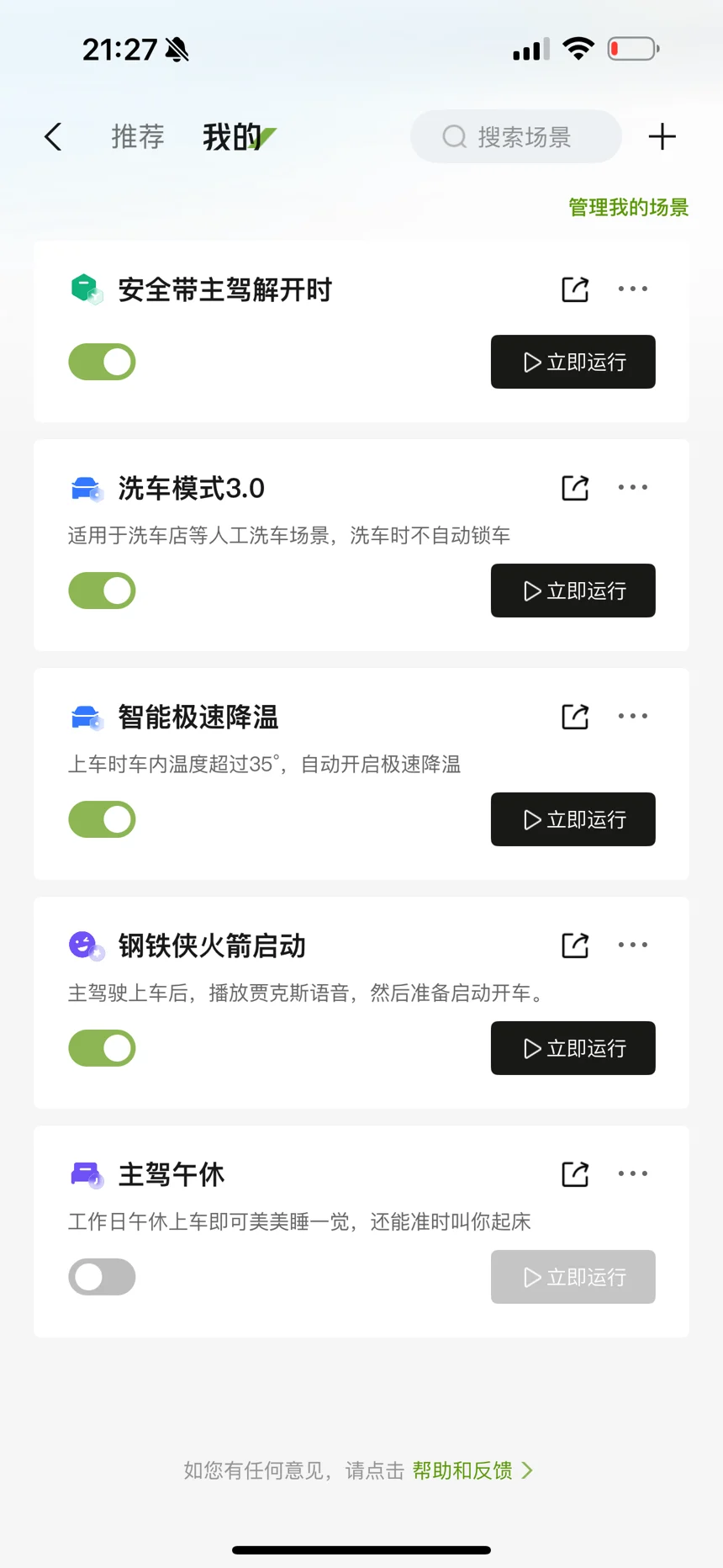 #给新鹏友的用车指南# @鹏友俱乐部 小鹏MONA03最近上新了天玑系统,对于老用户来说最新的改变就是完全不一样的界面了,而且有个重要的更新,左右的变道辅助画面,可以把界面放大,这样子可以左右变道的时候更加清晰,可以大大减轻了左右后视镜盲区大的缺点。新增的场景模式,我这边有几个分享指南。洗车模式,洗车时候可以打开,比较方便。智能极速降温模式,上车时的温度超过35度,车子会开启极速降温。还有情绪价值拉满的钢铁侠启动仪式。还有安全带解开时,主驾座位调后很多,方便下车,也是跟之前的迎宾模式同步了。