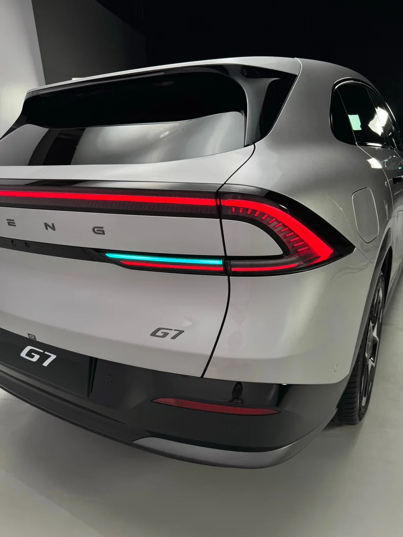 #小鹏G7重新定义出行美学# 小鹏G7的颜值真的绝了!流线型的车身配上犀利的贯穿式大灯,科技感拉满。悬浮车顶和无框车门的设计超有未来范儿,开在路上回头率爆表。隐藏式门把手和溜背造型不仅好看,还能降低风阻,实用又帅气。20英寸大轮毂让整车看起来更加运动,细节处处都是惊喜。这外观设计,妥妥的国产电动车颜值担当!
