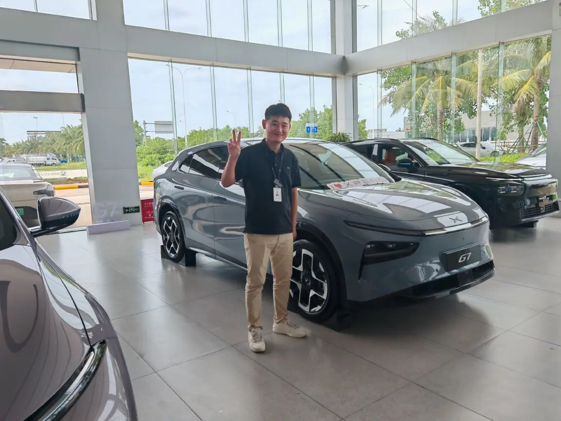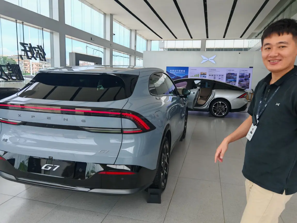 趁着午休来打卡G7新车,工作日门店人烟稀少,但挡不住销售的热情,展厅间显眼的蓝色G7散发着独特魅力瞬时把G6比了下去,正巧遇见美女主播,闲聊一番才知道小定已超2万,G7已成为最新宠儿,坐在车上和销售闲聊,听说G7全系都标配电吸门,5C超充,ARHUD,音响比一旁G6有明显提升,内饰全新升级,质感满满,眼前一亮的是座椅舒适度,是体验的同级最好,后排还配了手机无线充,听说高配版本有2000TOPS算力,着实惊人,这是准备无人驾驶的节奏,量了一下底盘高度,粗略估计19CM,结合CDC的可调硬度,驾驶体验和通过性可兼得,临走听说上市价格还有惊喜,期待一波。#小鹏G7重新定义出行美学#