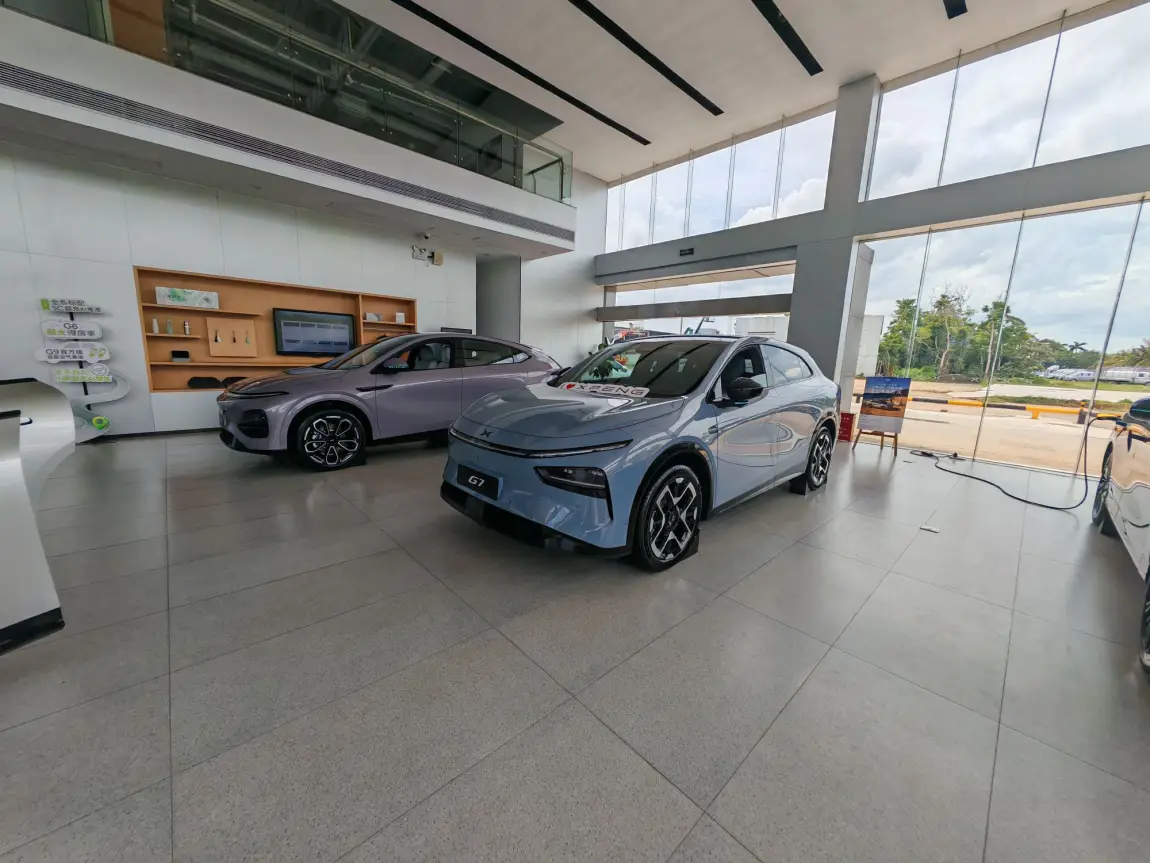 趁着午休来打卡G7新车,工作日门店人烟稀少,但挡不住销售的热情,展厅间显眼的蓝色G7散发着独特魅力瞬时把G6比了下去,正巧遇见美女主播,闲聊一番才知道小定已超2万,G7已成为最新宠儿,坐在车上和销售闲聊,听说G7全系都标配电吸门,5C超充,ARHUD,音响比一旁G6有明显提升,内饰全新升级,质感满满,眼前一亮的是座椅舒适度,是体验的同级最好,后排还配了手机无线充,听说高配版本有2000TOPS算力,着实惊人,这是准备无人驾驶的节奏,量了一下底盘高度,粗略估计19CM,结合CDC的可调硬度,驾驶体验和通过性可兼得,临走听说上市价格还有惊喜,期待一波。#小鹏G7展车已到店#