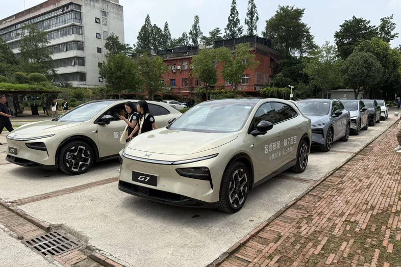 当工业设计遇见自然光韵,星昼灰是小鹏G7写给道路的一首视觉叙事诗。它不靠张扬的色调博取目光,而是以低饱和的灰调基底为画布,在阳光下悄然透出微妙的紫罗兰光晕——这是金属漆面与多层镀膜工艺共同谱写的色彩变奏。车身曲面如流水般承接光线,从车肩到腰线,灰与紫的渐变在晨昏交替间流动,仿佛将北欧极光的冷冽静谧凝固于金属之上。