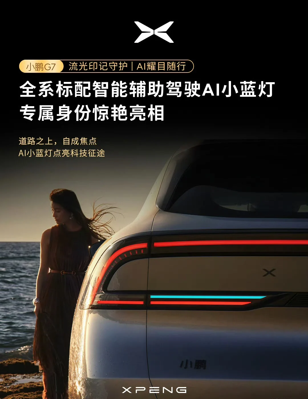 #小鹏G7重新定义出行美学# 小鹏汽车每一款车的外观都很有特点,很有设计感!25款全新小鹏G7在原P7+尾灯基础上增加了眼尾妆,无论是从侧后还是正后方观察极具美感!而智驾小蓝灯则是点睛之笔!尤如死物有了灵魂一般!相信在路上启动智驾点亮小蓝灯那一刻,绝对是惊鸿一瞥!@社区活动小姐姐 @鹏友大管家