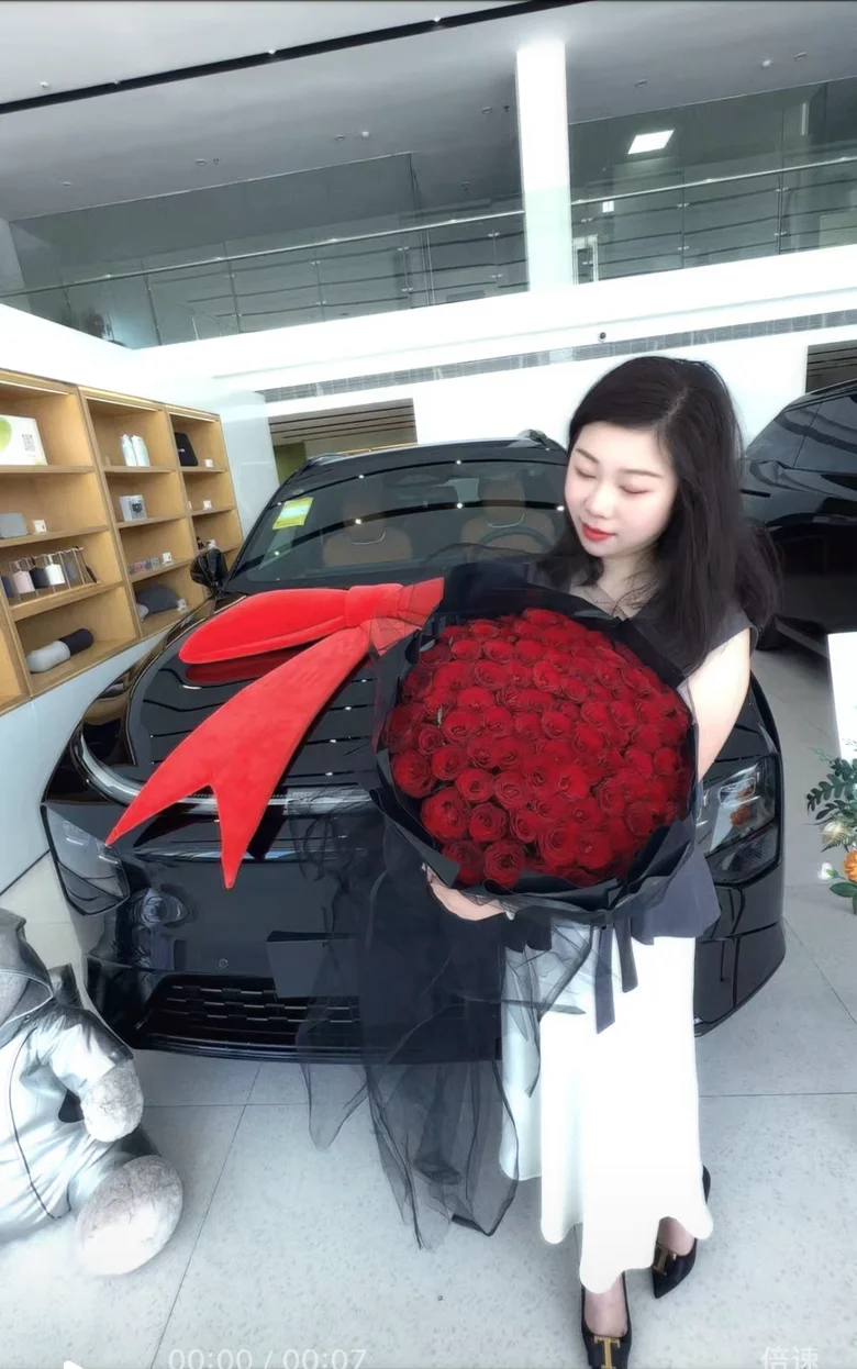 被协助提车的小姐姐追问花是哪个花店定的🤓,感谢闺蜜👭给的仪式感!漂亮漂亮!