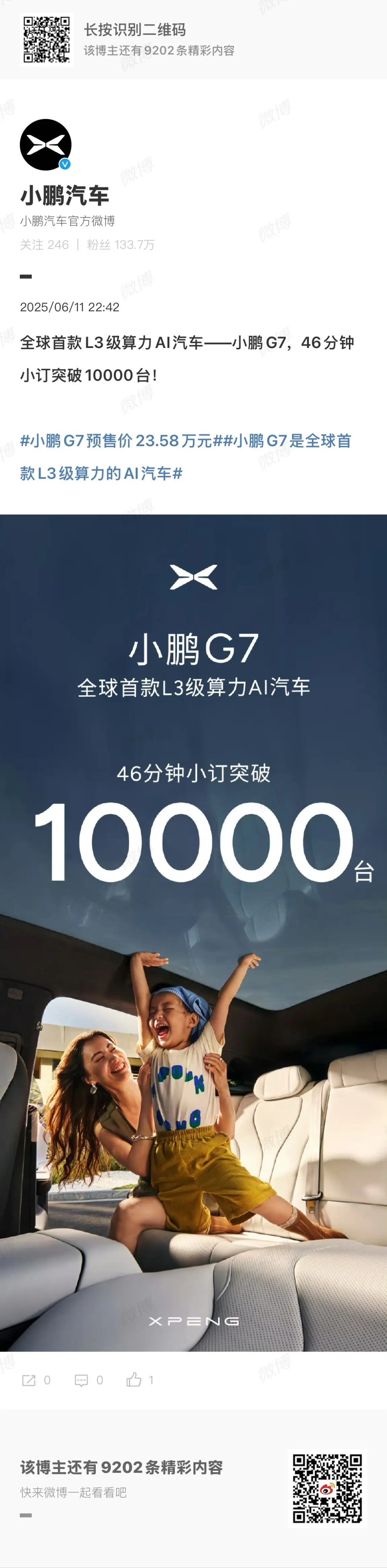 #小鹏G7重新定义出行美学# 第一眼看到小鹏G7,就被它惊艳到了!家族式前脸极具辨识度,贯穿式灯带点亮时,仿佛与未来接轨,科幻感扑面而来。流畅的侧面腰线,勾勒出优雅动感的车身姿态,从车头到车尾一气呵成,既有力量感又不失精致。 车身配色也让人眼前一亮,每一款都独具魅力。特别是那抹“星际绿”,在阳光下闪耀着独特的光泽,宛如浩瀚宇宙中神秘的绿宝石,既个性又高级。开着这样一辆车穿梭在城市街道,绝对是路上最亮眼的存在。 小鹏G7用极具创意的设计,将科技与美学完美融合,真正重新定义了出行美学!#小鹏G7重新定义出行美学#