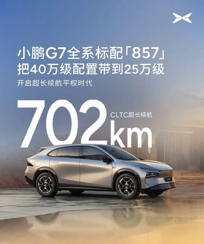 #小鹏G7同级唯一标配857# 小鹏G7这次真的杀疯了!本来以为20多万的纯电车能有啥惊喜,结果直接给我整懵,把以前40万级豪车才有的“857”三件套(全域800V高压SiC平台、5C超充AI电池、700+km续航)全部标配!关键小鹏G7的预售价才23.58万起!这相当于用买经济型车的钱,直接拿下顶配级三电配置。以前买车总说“一分钱一分货”,现在小鹏直接打破规则,把高端技术卷到普通消费者都能轻松够到的价位,这不就是妥妥的“科技平权”嘛!