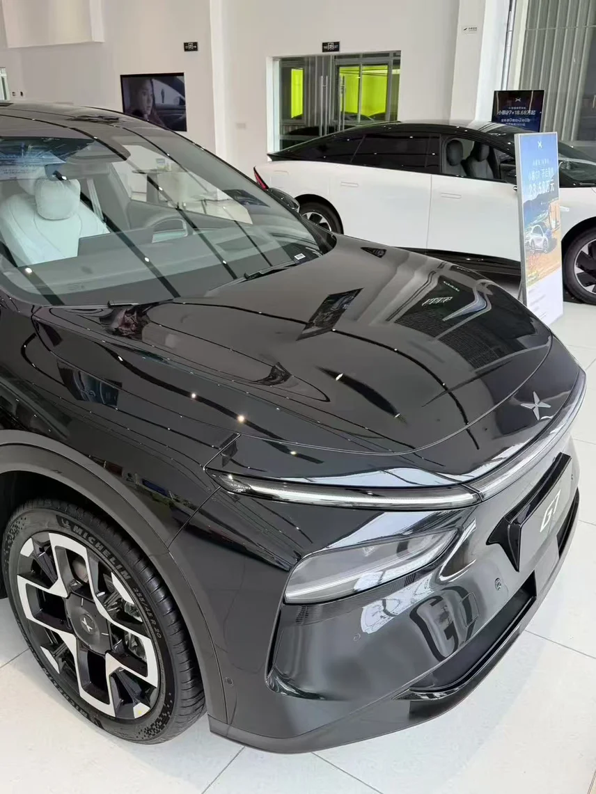 1. 我和老婆第一眼看到小鹏G7,这前脸设计简直像从科幻电影里开出来的!家族式的未来感造型配上流畅的侧面腰线,就像给车子穿了件高定西装,科技感和高级感直接拉满。特别是那个黑色车漆,在阳光下若隐若现的样子,比我的墨镜还炫酷~