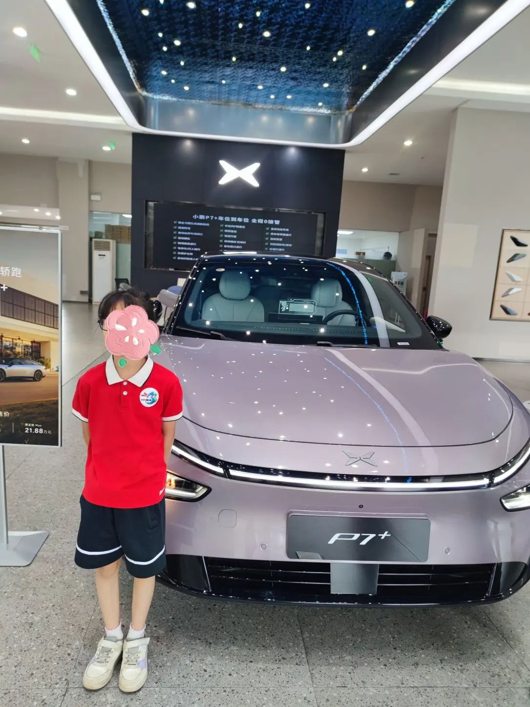 经过漫长的选车过程,参考女儿的意见,终于选定了性价比较高的小鹏p7+(就是没有选上女儿喜欢的紫色,因为紫色一定要配浅色内饰,担心易脏)。二排空间大,座椅功能拉满,最适合我们这种有小孩的家庭。女儿超喜欢后排的小屏幕,还有后排放下与后备箱的超大空间,可以用来睡觉玩耍。